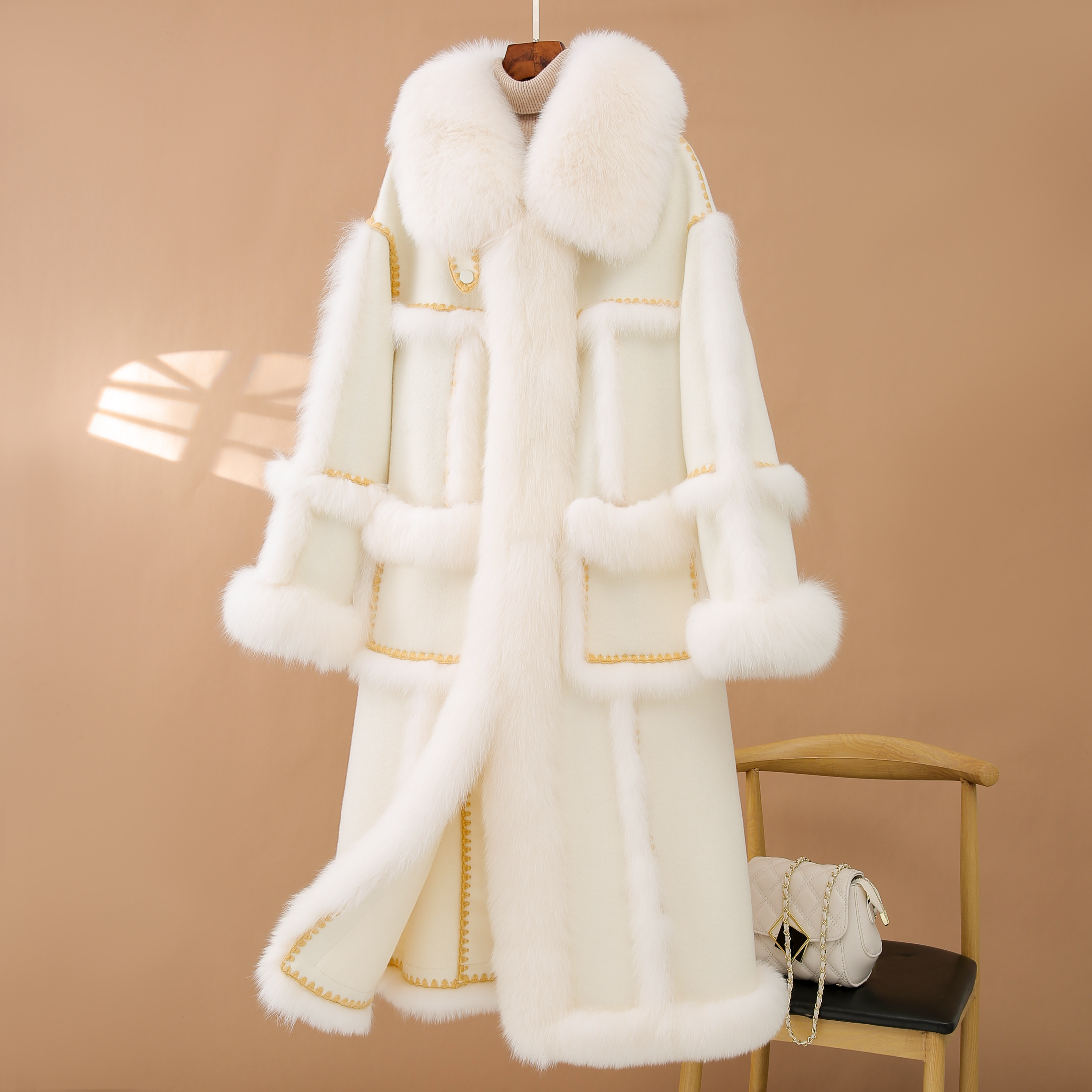📚 高端狐狸毛皮草外套女冬季长款2025新款双面羊绒毛呢大衣时尚毛毛