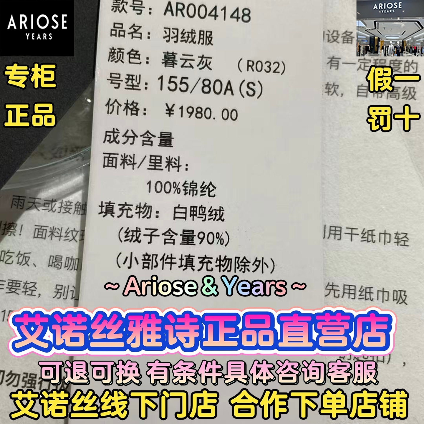 📚 艾诺丝雅诗正品2025冬装国内代购新款时尚羽绒服女AR004148-1980