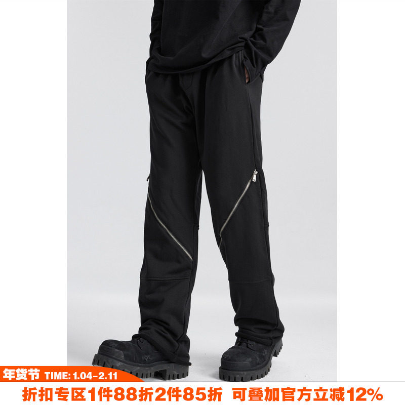 📚 NOVACAM 美式高街cleanfit设计感国潮长裤拉链重磅阔腿休闲卫裤男