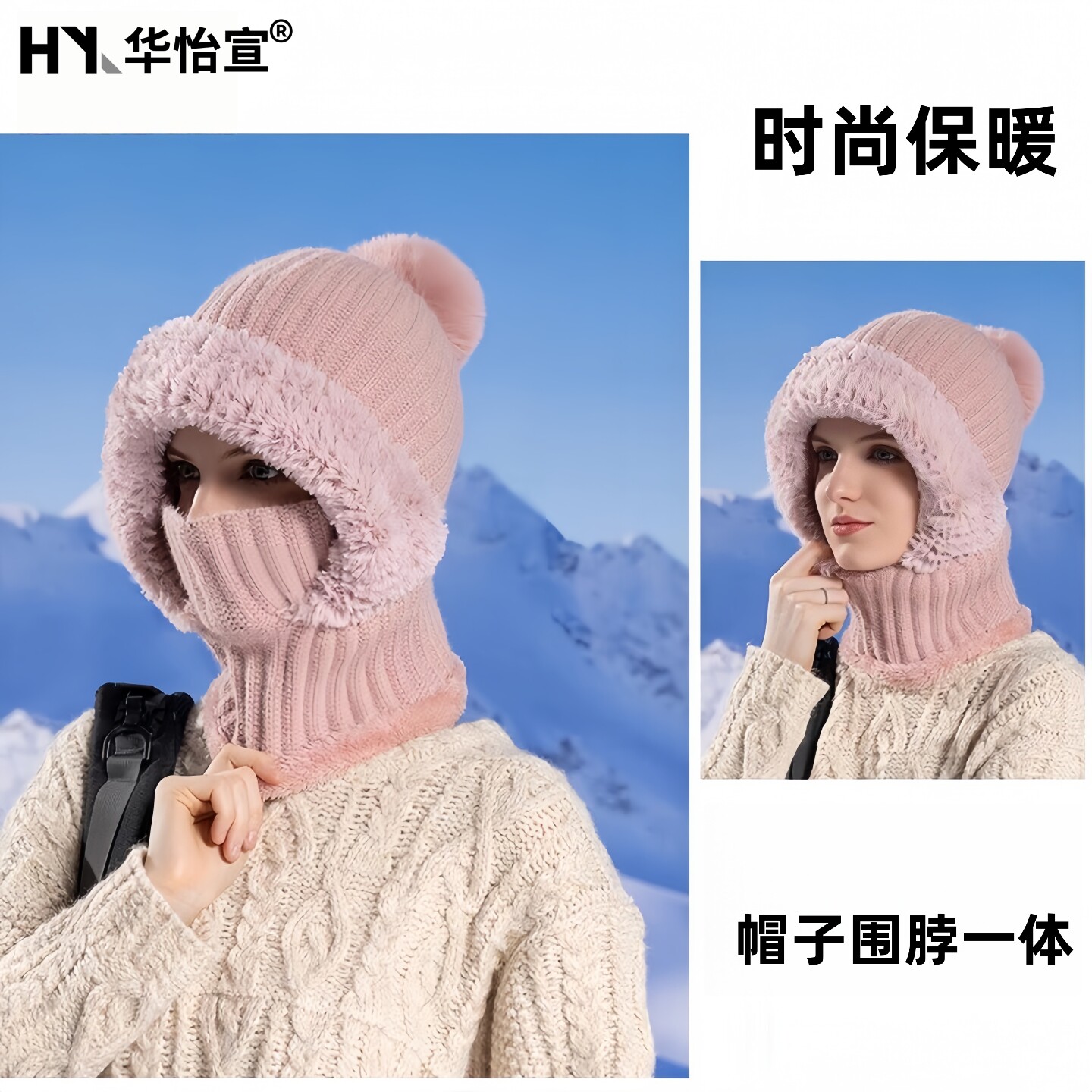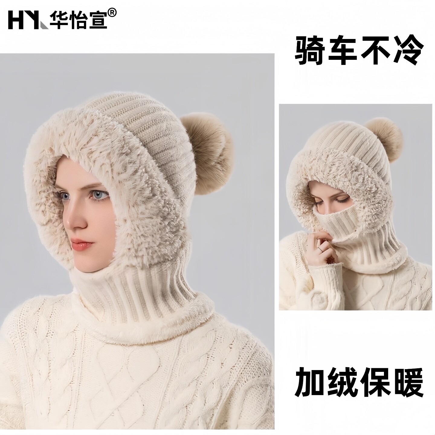 📚 老太太毛绒头套奶奶保暖连帽围脖老年人妈妈女士冬天帽子围巾一体
