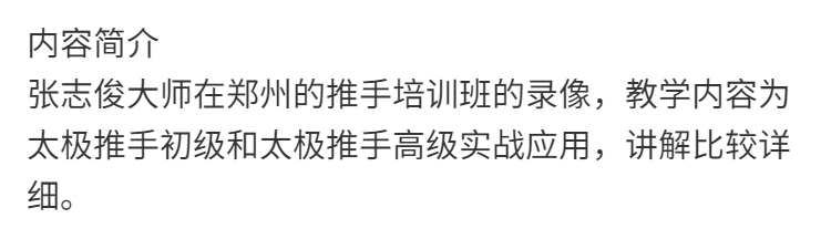 📚 张志俊 郑州推手培训班录像U盘视频 陈式太极实战技击教学 未精简