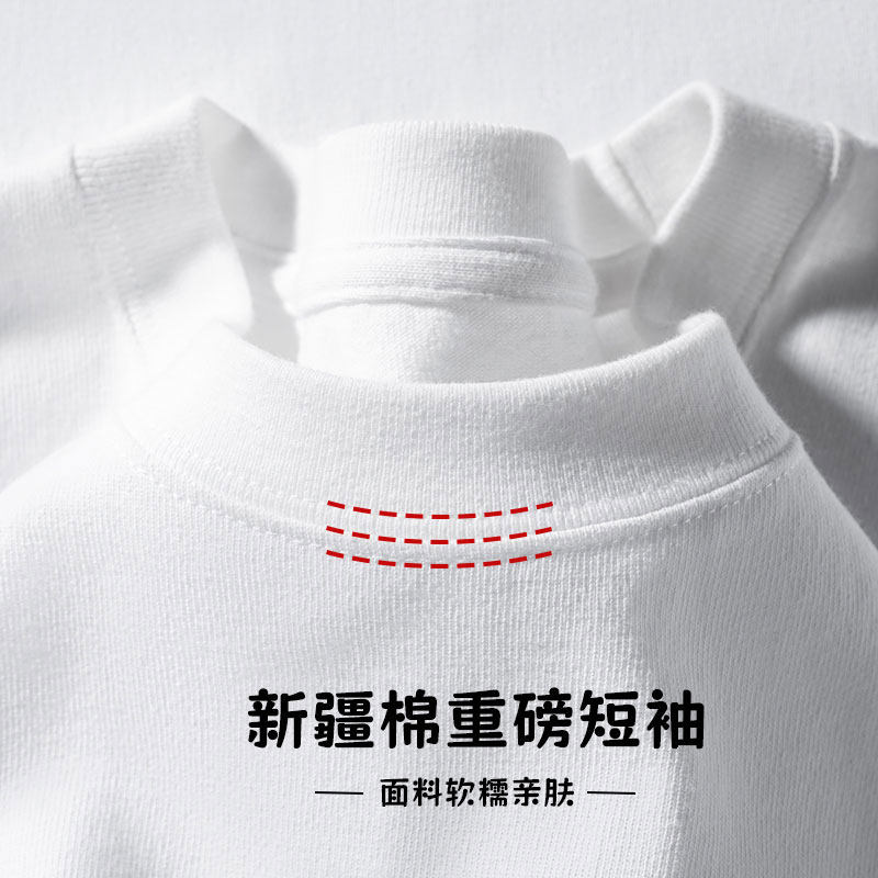 📚 230g重磅新疆棉纯白色短袖t恤男士纯棉夏季女生纯色正肩打底衫