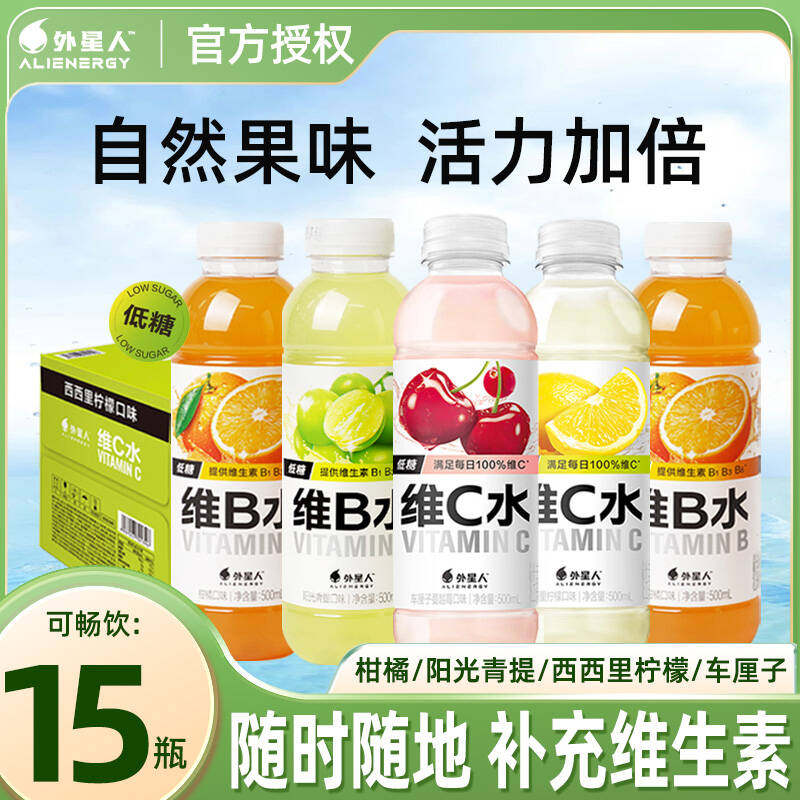 📚 外星人维C水维B水车厘子阳光青提维生素多口味组合500ml整箱饮料
