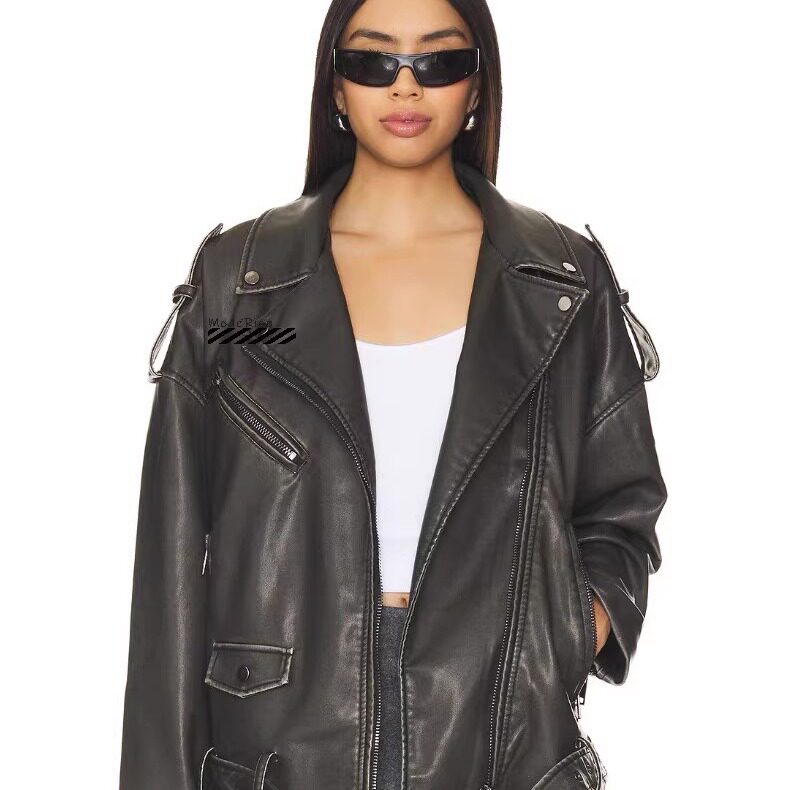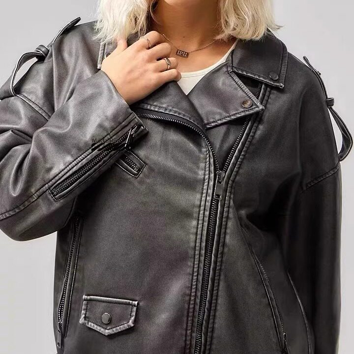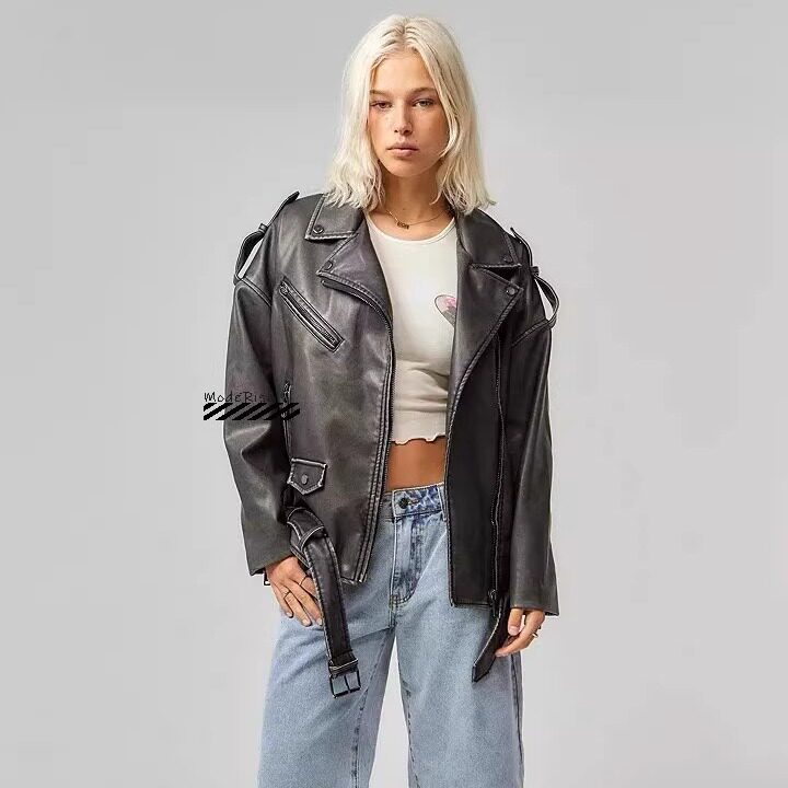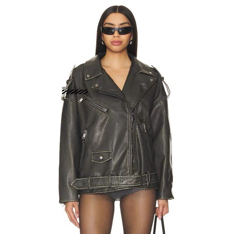 📚 买手店正品 Lioness 24秋冬款复古翻领做旧机车拉链夹克皮衣外套