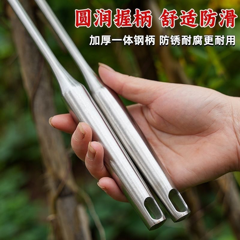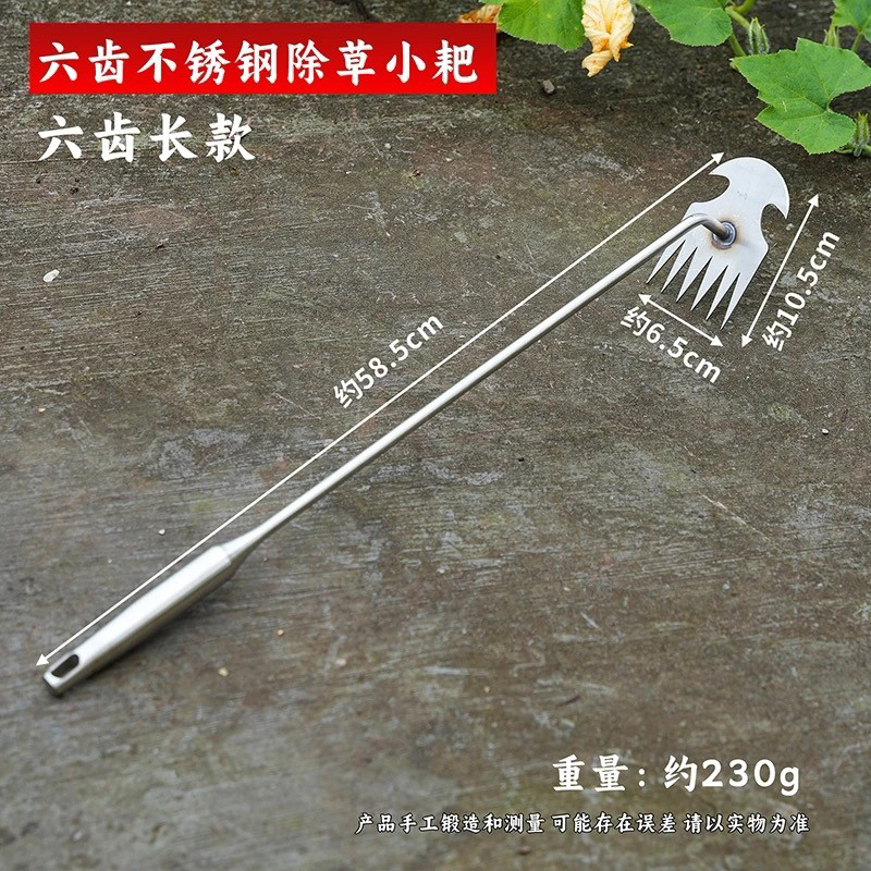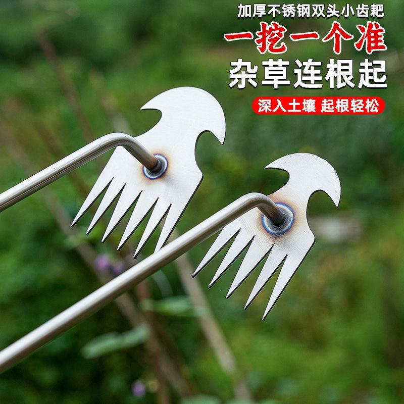 📚 新款加厚不锈钢拔草园艺耙子除根小号手握式松土除草小多齿耙子