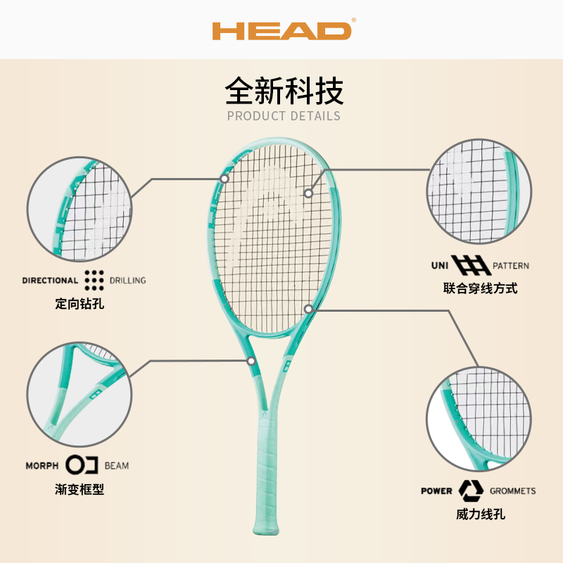 📚 HEAD海德BOOM网球拍高芙穆塞蒂同款MP全碳素专业拍单人男女款
