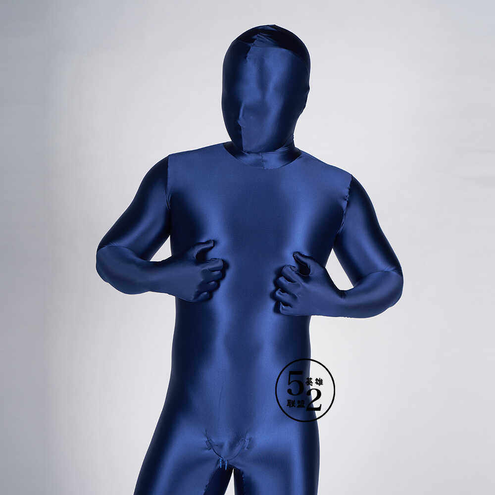 📚 52英雄联盟深蓝氨纶油光布连体全包紧身衣超薄丝滑zentai定制包邮
