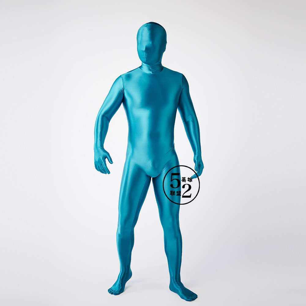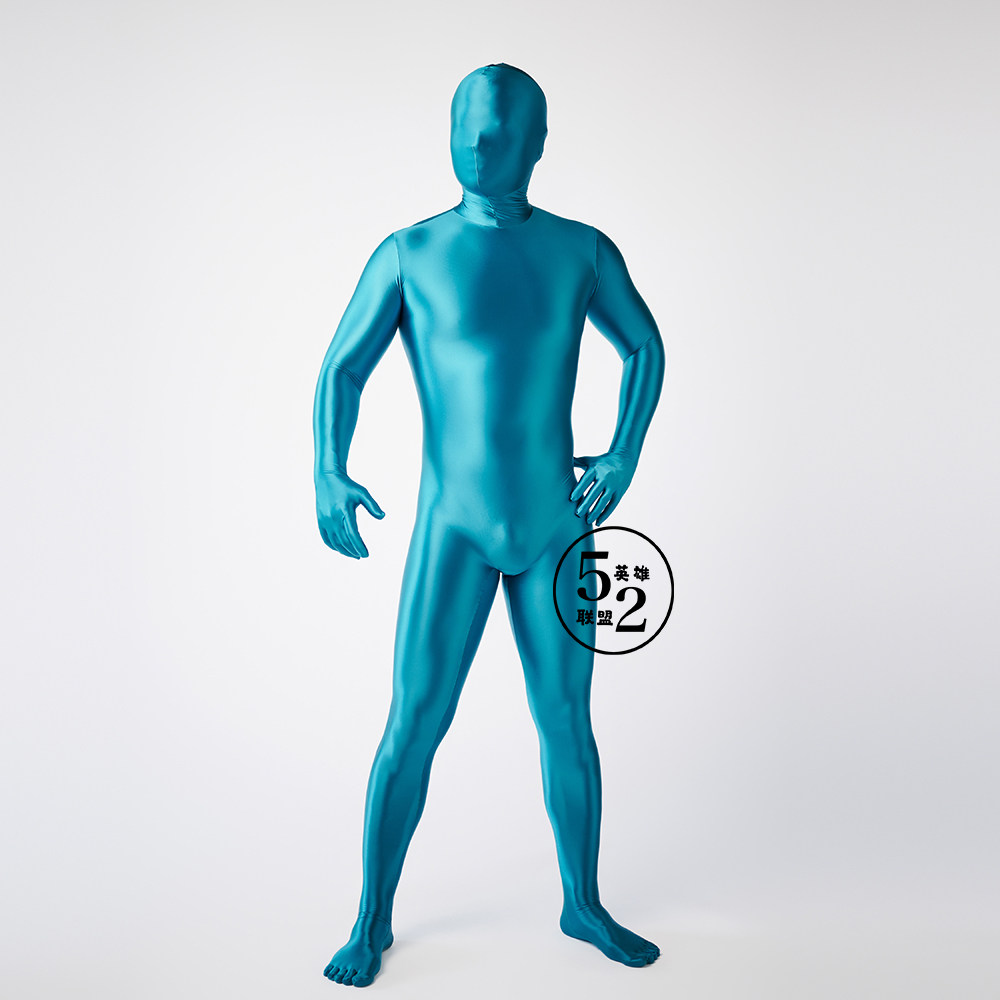 📚 52新款油光布连体全包zentai紧身衣定制高弹丝滑柔软孔雀蓝油光布