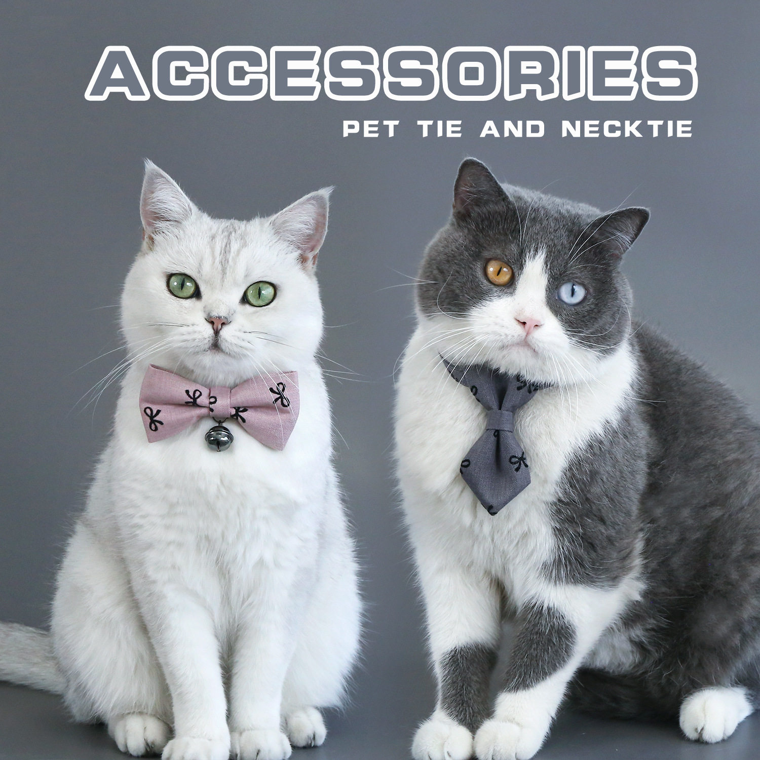 📚 宠物蝴蝶结项圈灰粉色领带可调中小型宠物项圈印花英伦风绅士领结