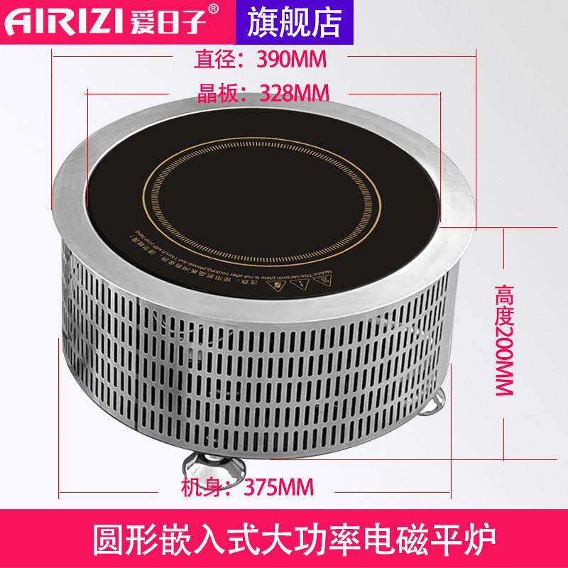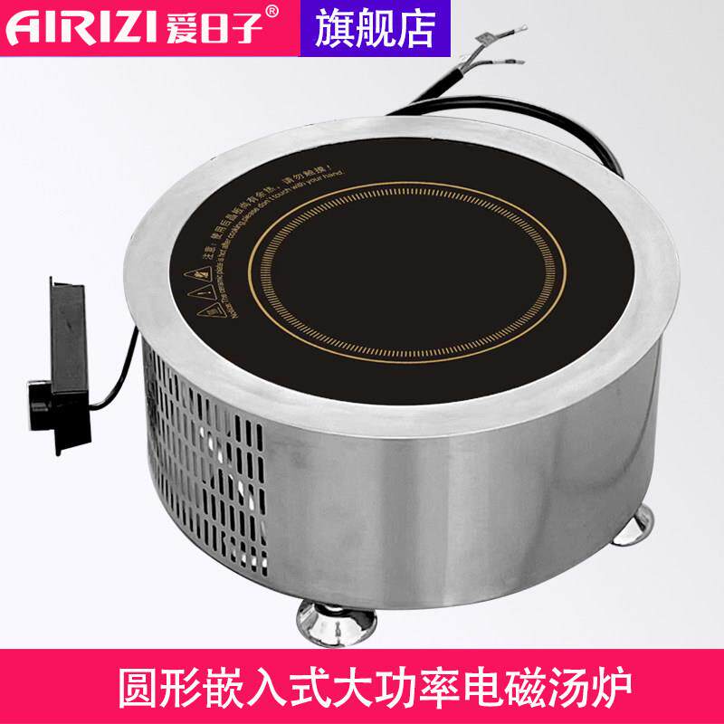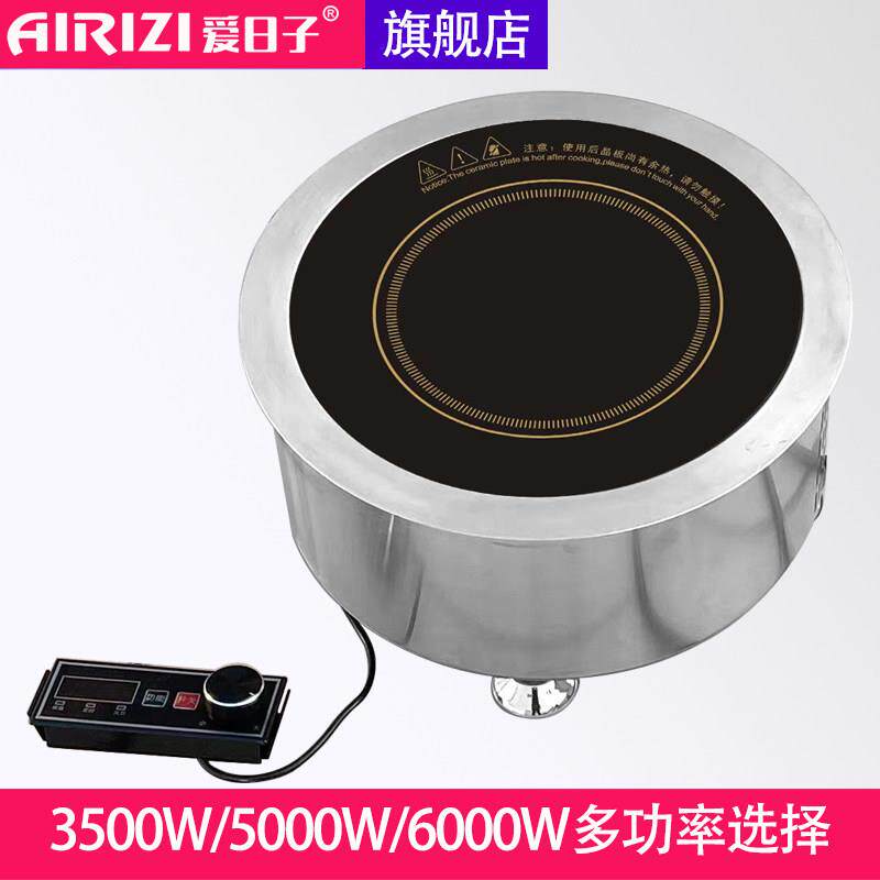 📚 爱日子5000W圆形嵌入式220V三相380V大功率商用电磁汤炉猛火灶台
