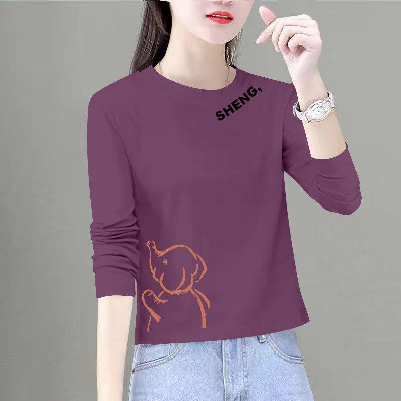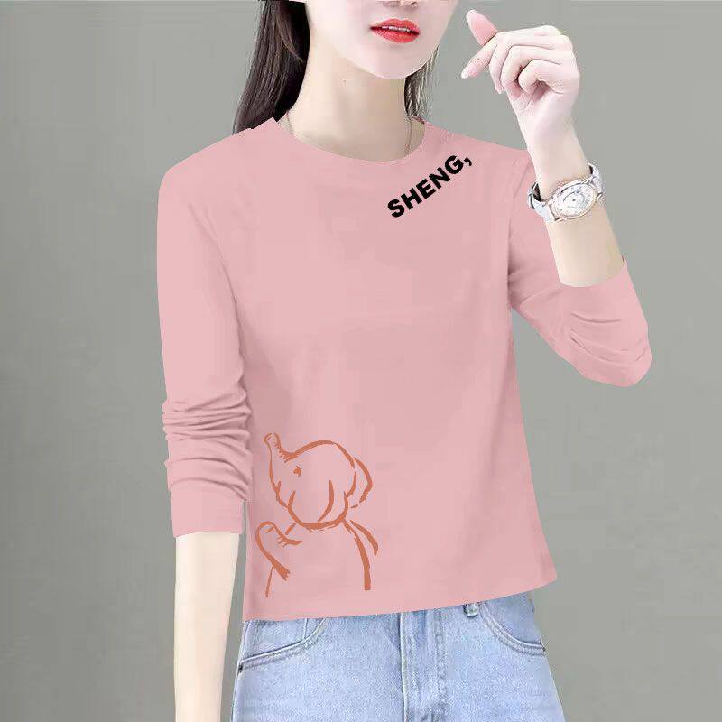 📚 纯棉短款长袖T恤女秋冬新款简约宽松遮肉减龄印花气质上衣ins潮