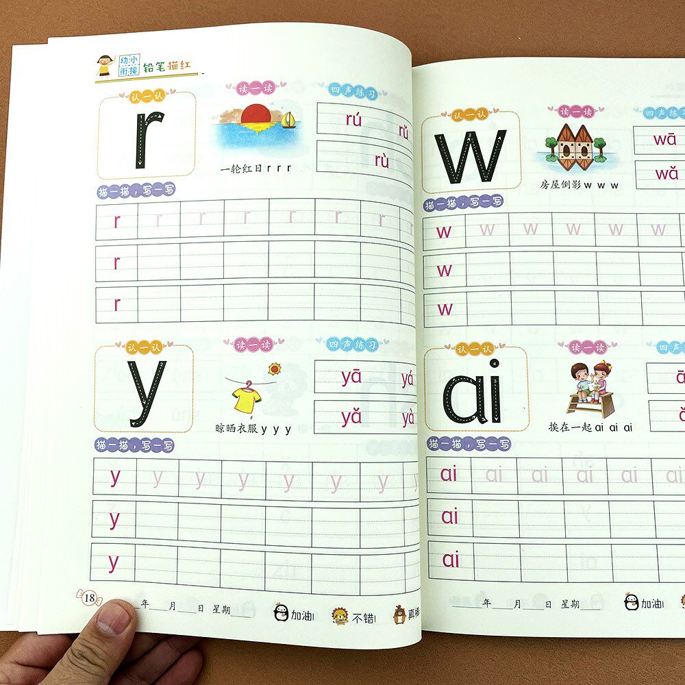 📚 拼音描红本幼儿园初学者幼小衔接幼儿园学前班中大班升一年级汉语拼音练习册声母韵母学习神器字母拼音拼读训练教材天天练一日一练