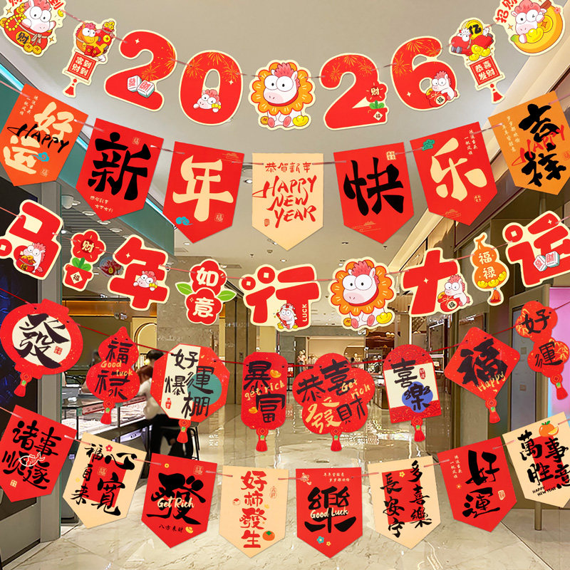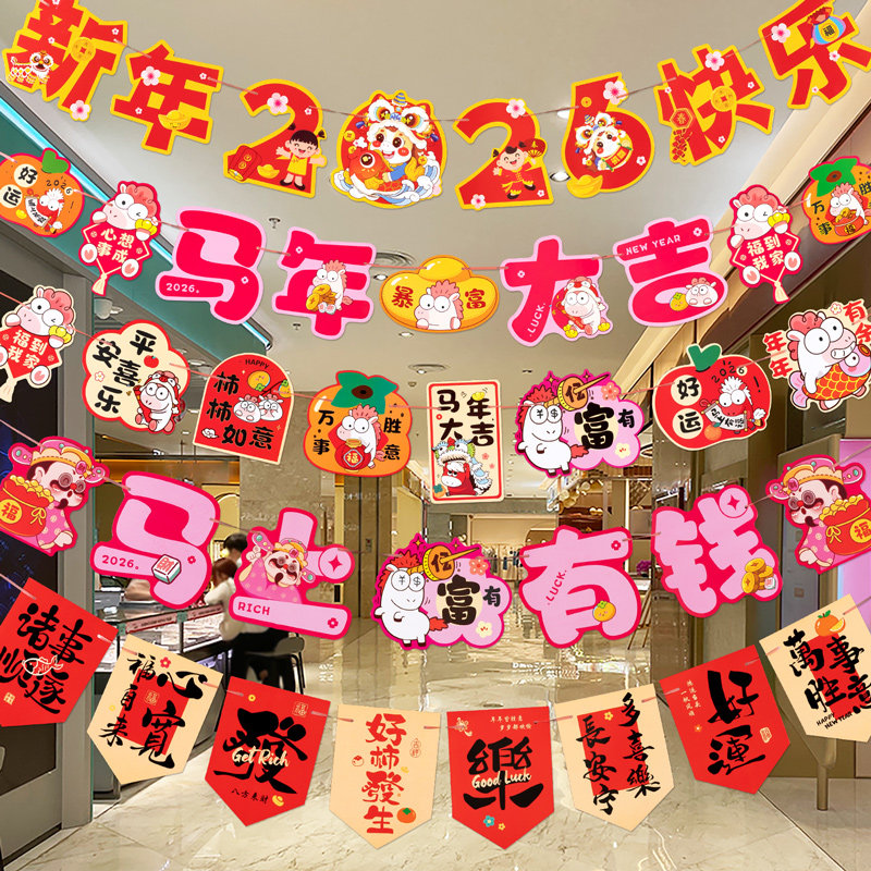 📚 2026马年新年装饰拉旗场景氛围布置拉花彩带店铺挂件吊饰挂饰彩旗