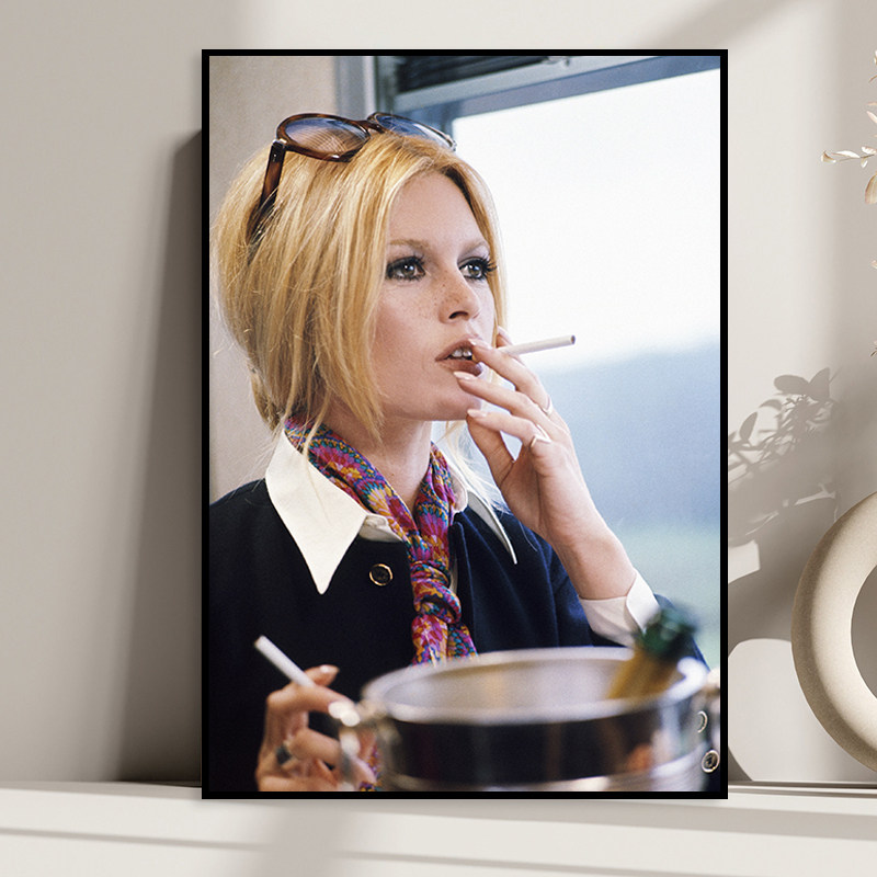 📚 Brigitte Bardot 碧姬芭铎 复古性感美女抽雪茄明星海报酒吧壁画