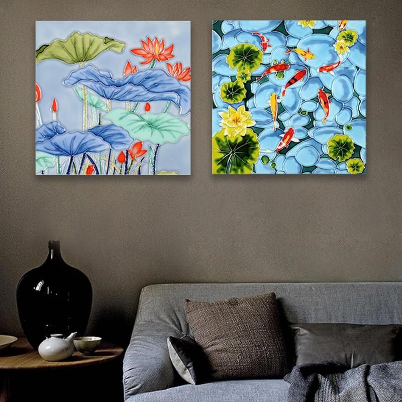 📚 唐三彩瓷板画陶瓷装o饰画瓷片画瓷版画客厅玄关挂画墙壁背景墙壁