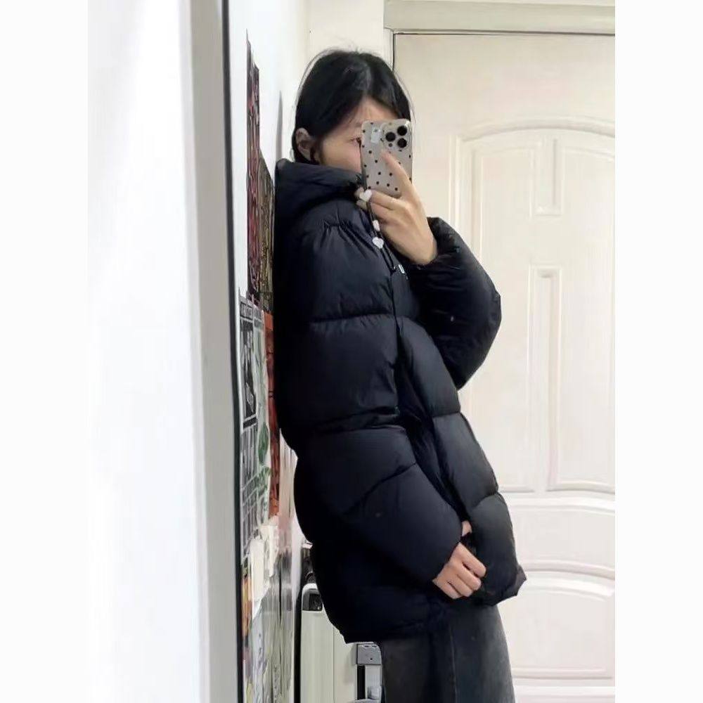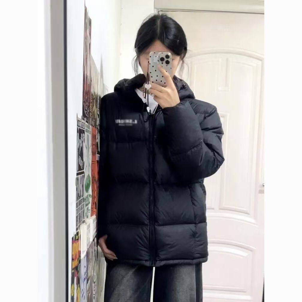 📚 大码黑色短款羽绒棉服女冬季韩系宽松连帽面包服学生加厚保暖棉衣
