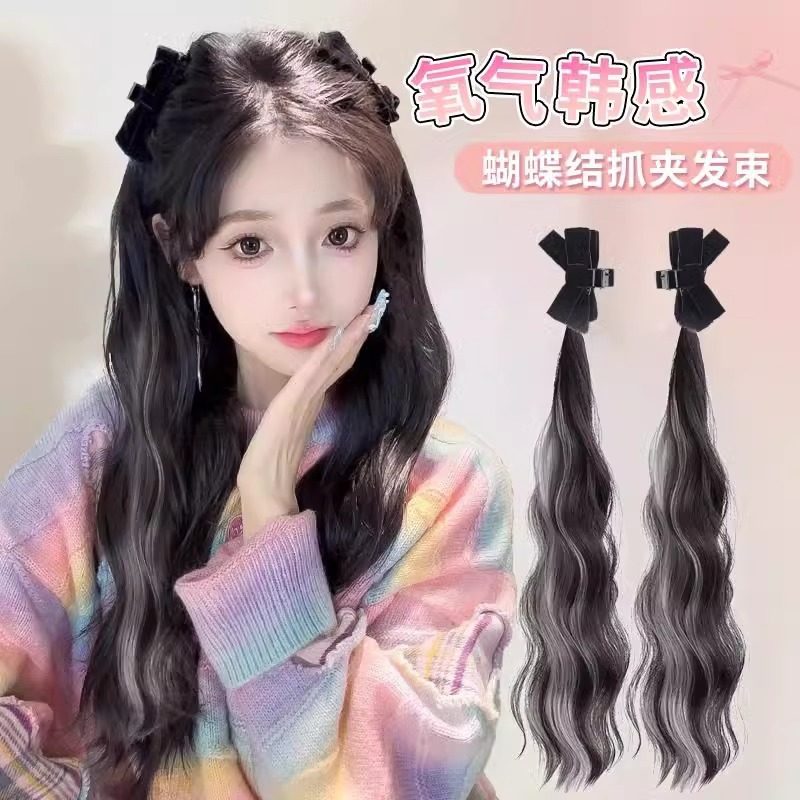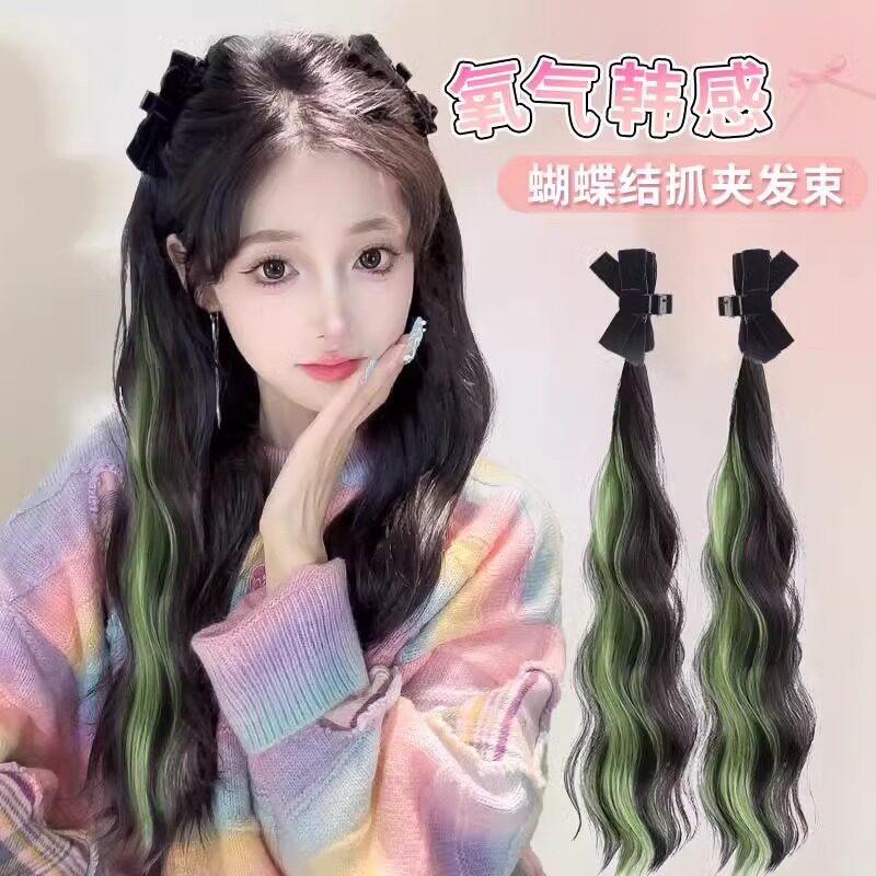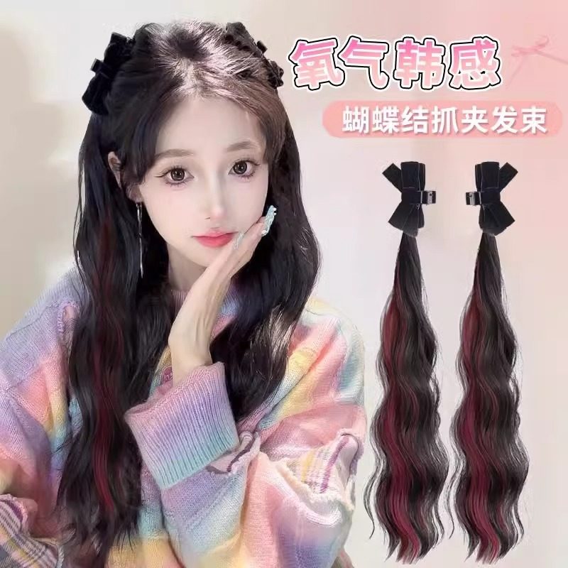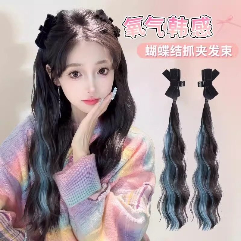 📚 挑染双马尾抓夹蝴蝶结蓬松增发量发束女自然仿真发精灵耳长发辫子