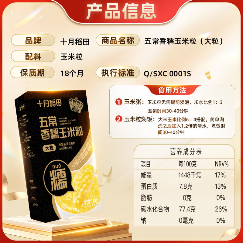 📚 【免浸泡】十月稻田五常香糯脱皮玉米粒大粒大碴粥粗粮杂粮主食