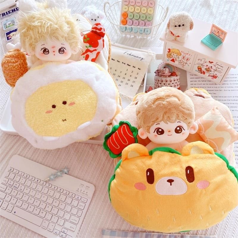 📚 可爱10cm娃床品送被s子枕头汉堡熊床垫玩偶公仔睡衣服棉花娃娃