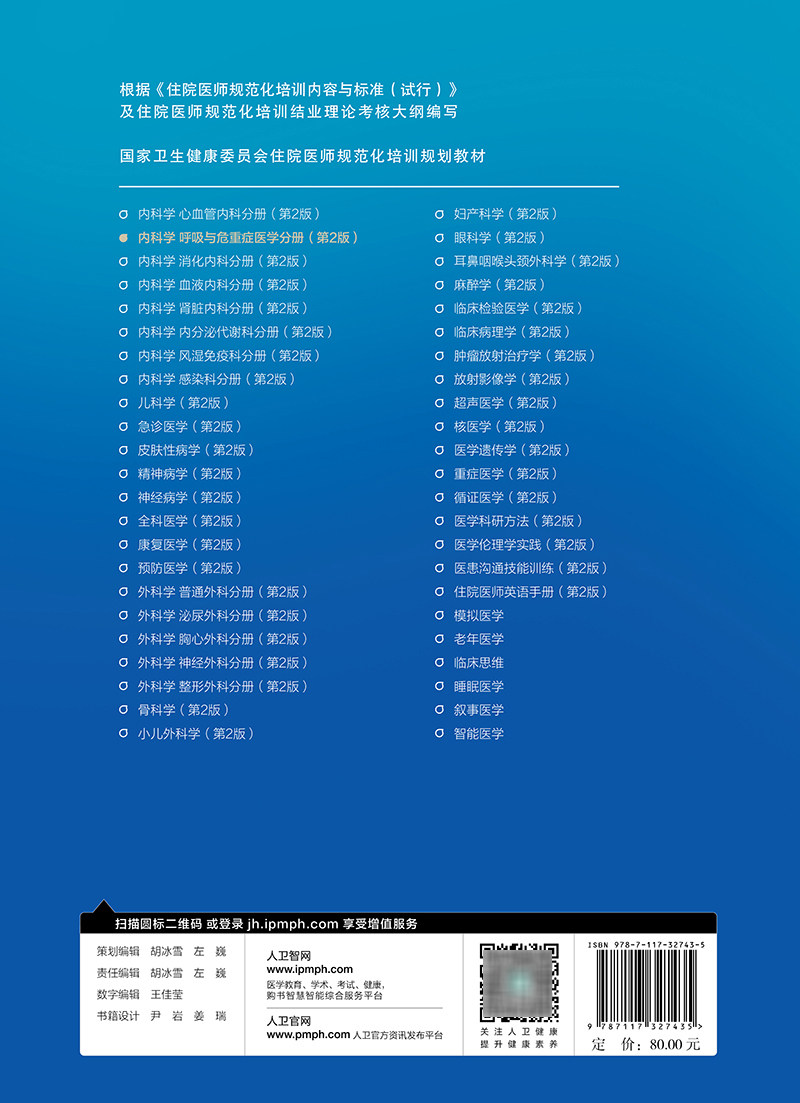 📚 内科学 呼吸与危重症医学分册 第2版 国家卫生健康委员会住院医师规范化培训规划教材 王辰 高占成 人民卫生出版社9787117327435