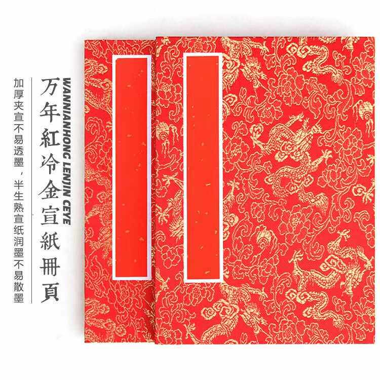 📚 加厚万年红册页折页签到本冷金礼签本净心手工宣纸本本花名册双层