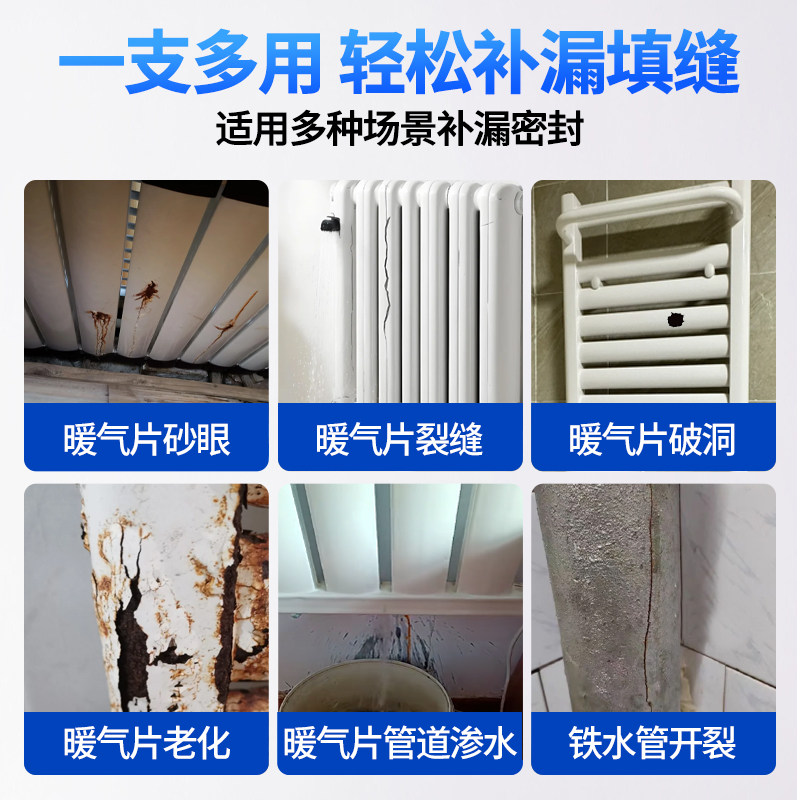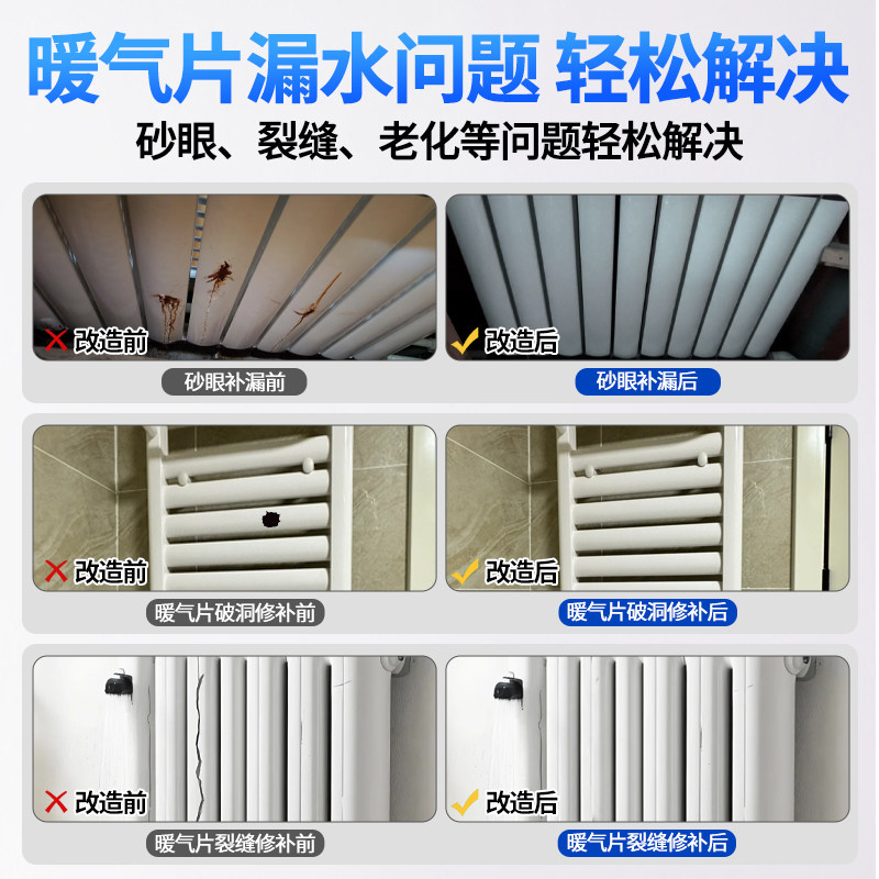 📚 暖气片漏水修补胶砂眼堵漏暖气管道修补神器堵漏剂带水高压砂眼铸工胶速干防水高强度耐高温铁金属修补剂破裂