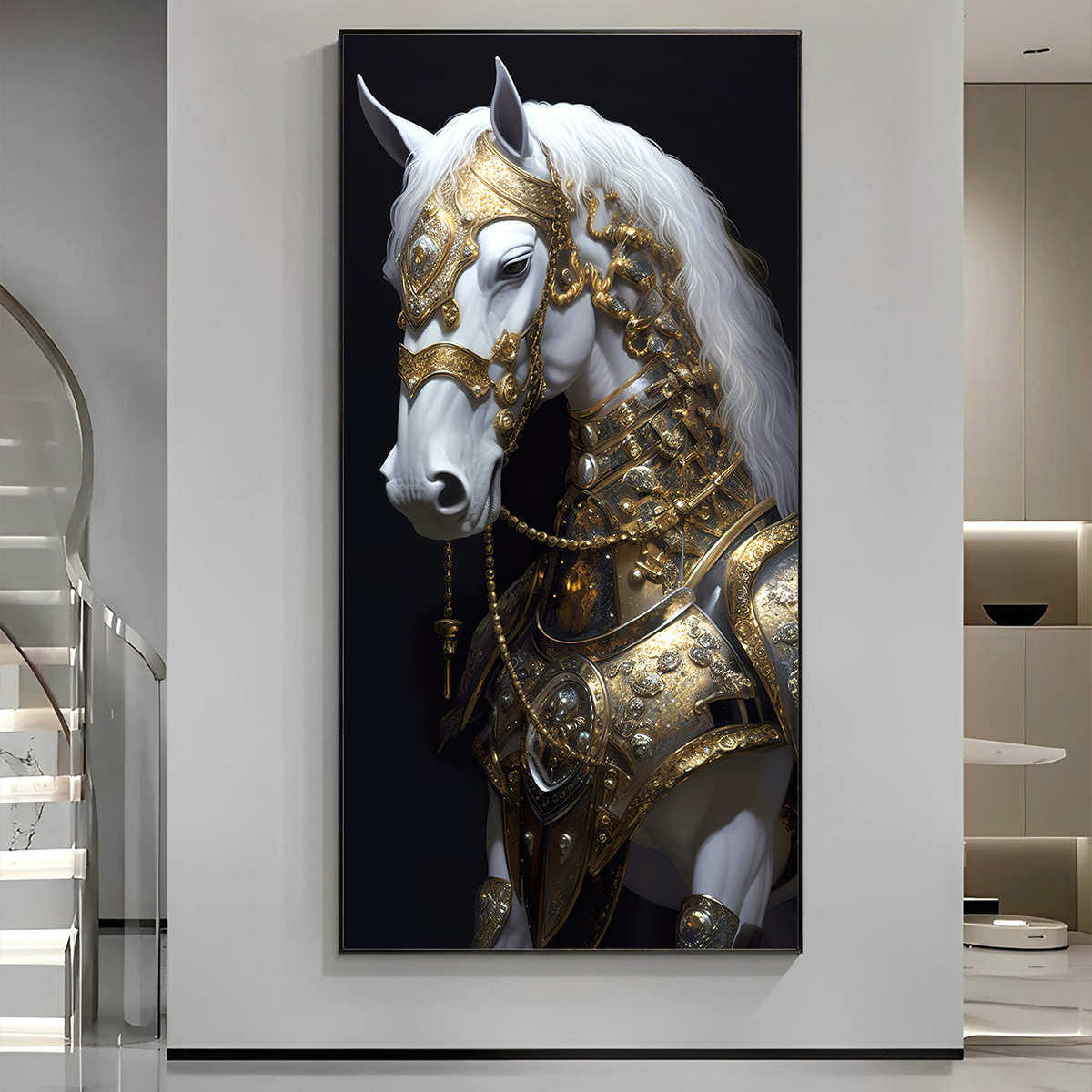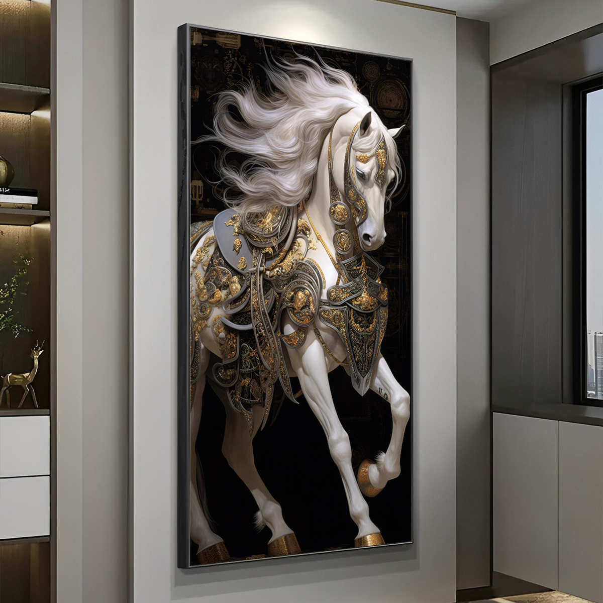 📚 玄关过道轻尽头壁画走廊大气现代客厅挂画骏装饰画马到成功奢马图