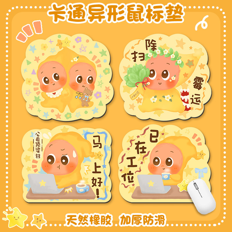 📚 桌面办公电竞游戏滑鼠垫可爱卡通星星人系列异型防滑鼠标垫加厚