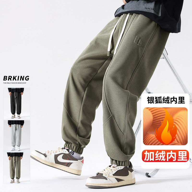 📚 woodsoon 男士卫裤加绒秋冬季束脚长裤重磅男生潮流休闲裤男裤子