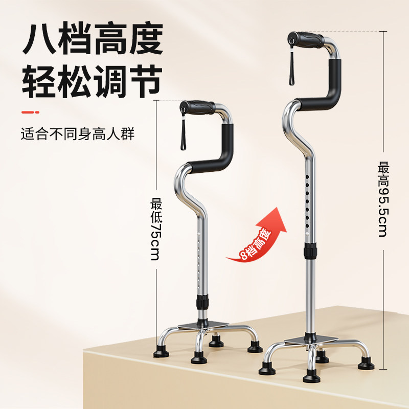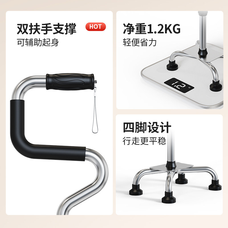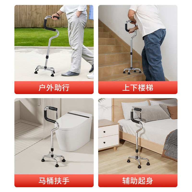 📚 拐杖康复走路助步器老人辅助行走四脚防滑拐棍手杖轻便摔助行器