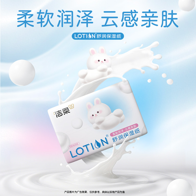 📚 洁柔Lotion乳霜纸舒润保湿纸宝宝专用云柔巾100抽2包鼻敏感适用