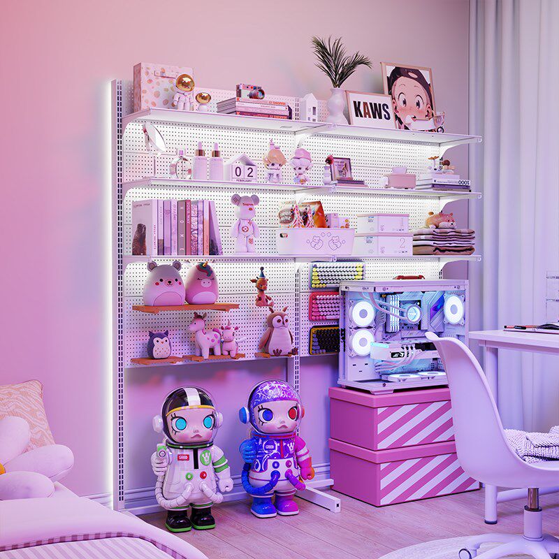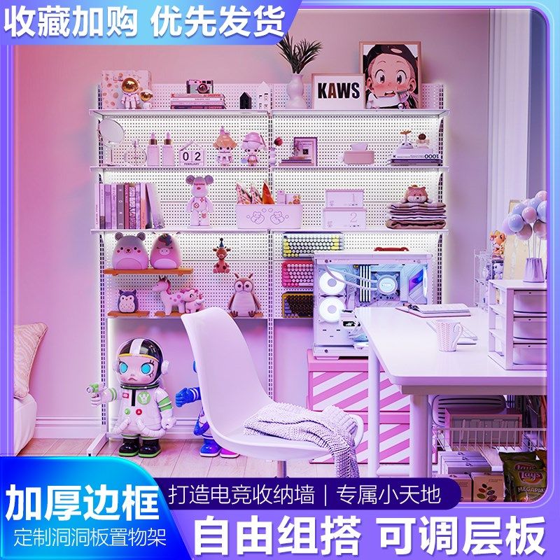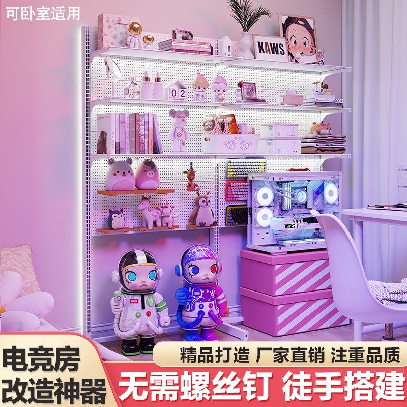 📚 电竞洞洞板立式置物架落地展示架金属收L纳书房电脑桌面装饰改造