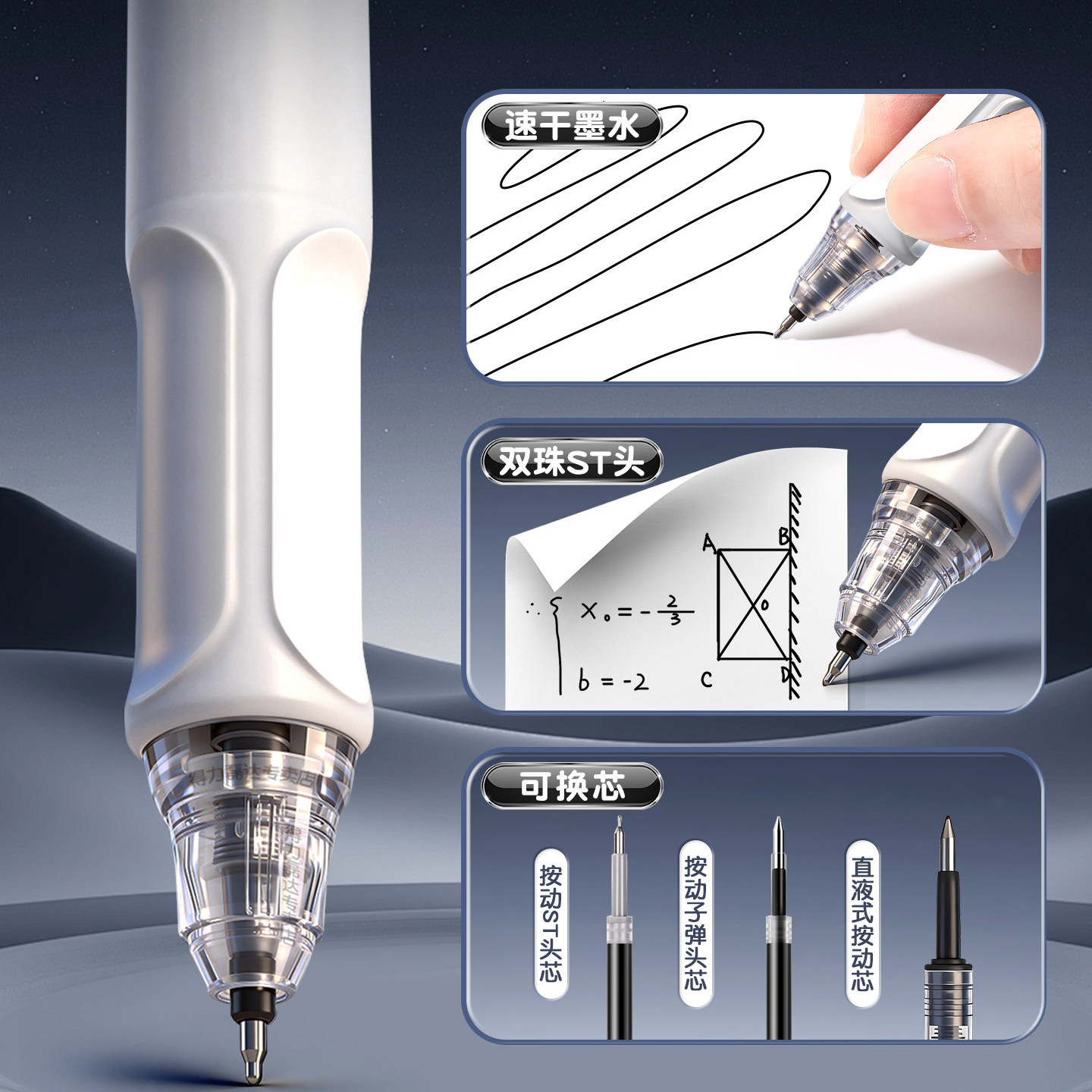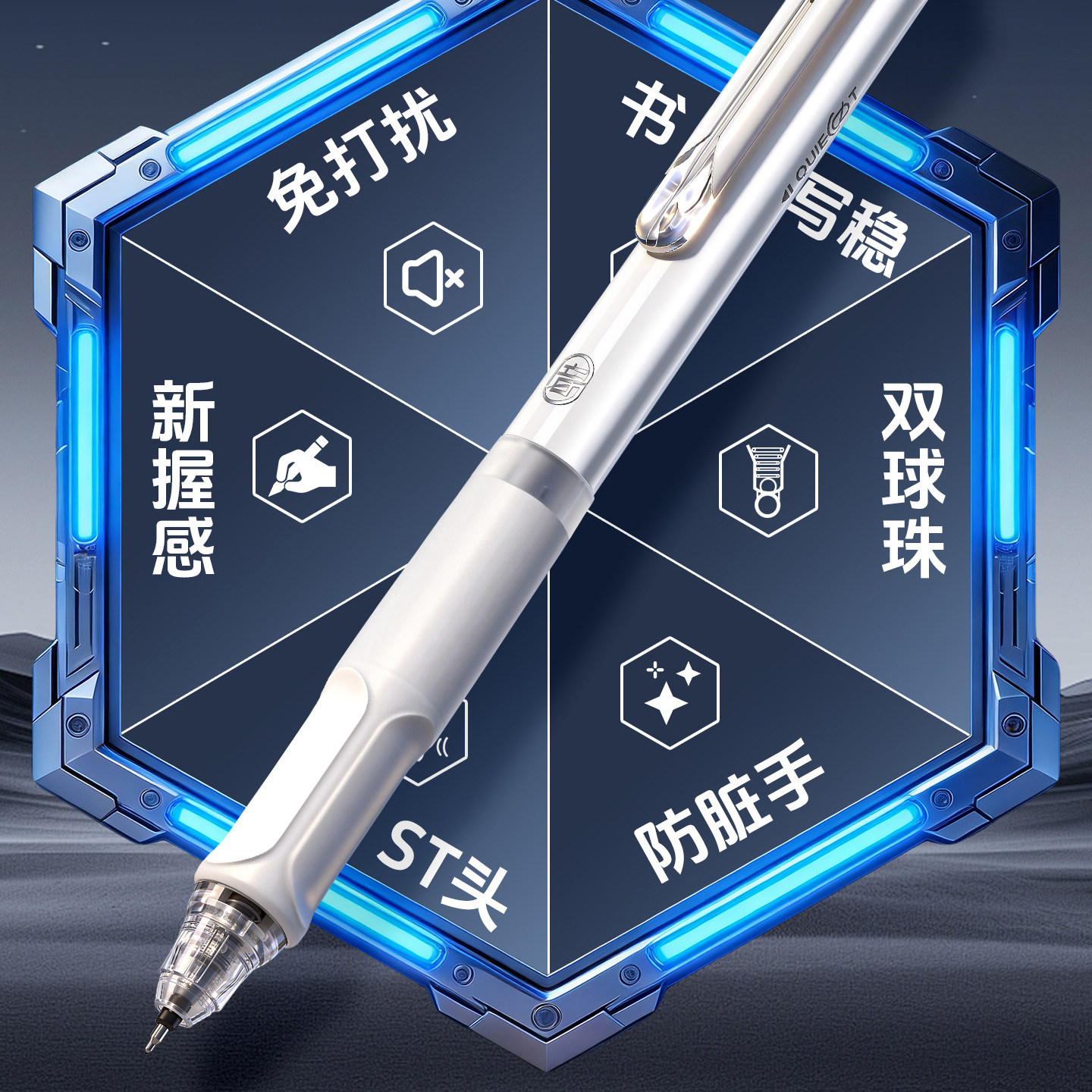 📚 得力六边形战士ST头直液笔考试自习室图书馆静音减震多握感速干双珠球备考刷题考研考公用笔不累手初中生专用