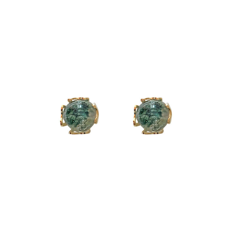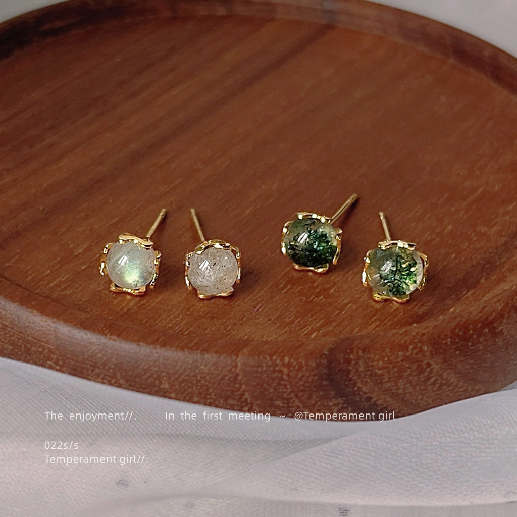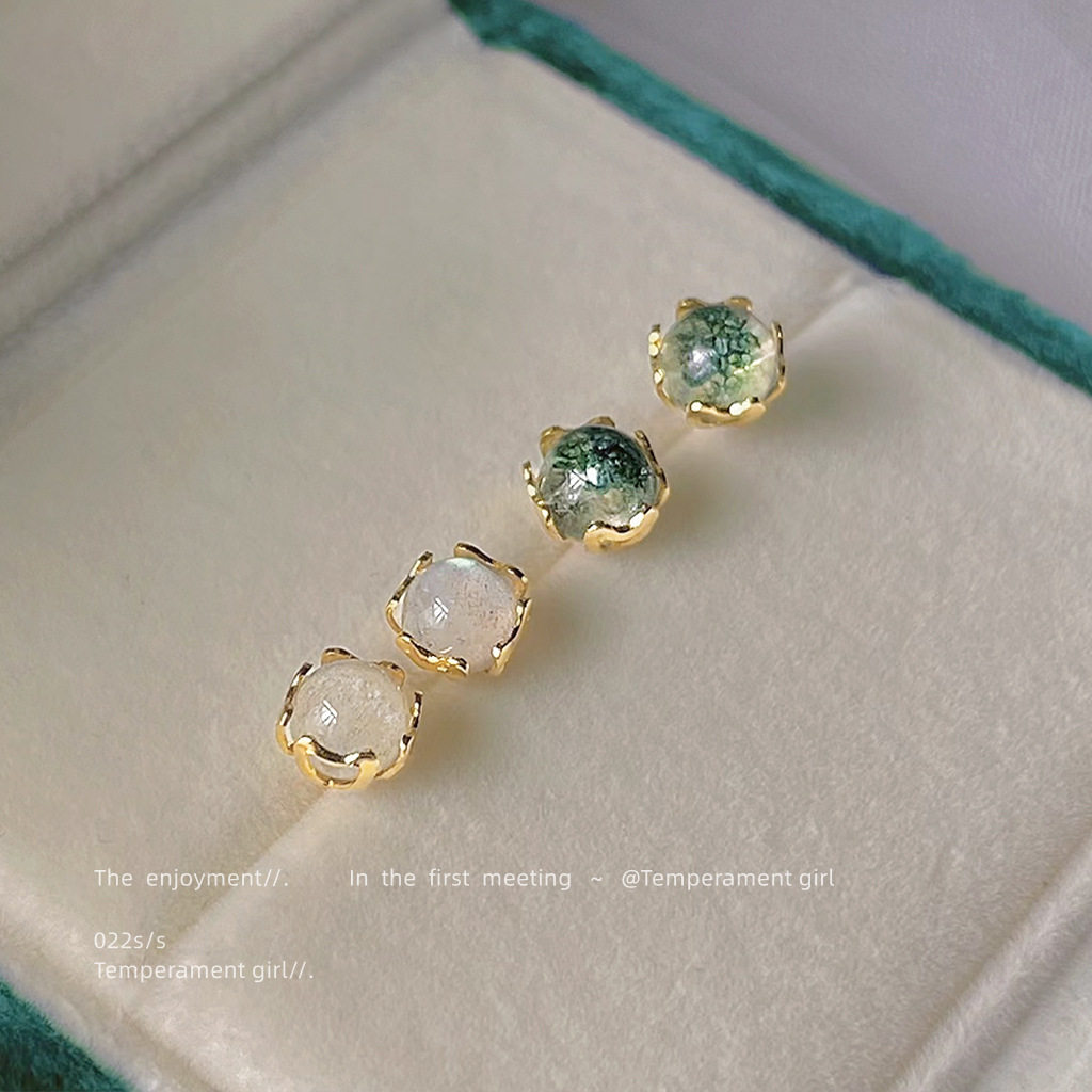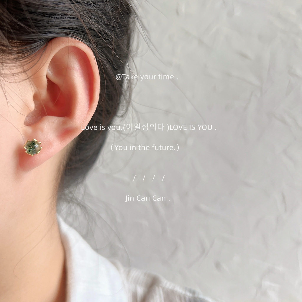 📚 925银针镀14K迷你版闪光 绿幽灵耳钉小巧气质耳饰