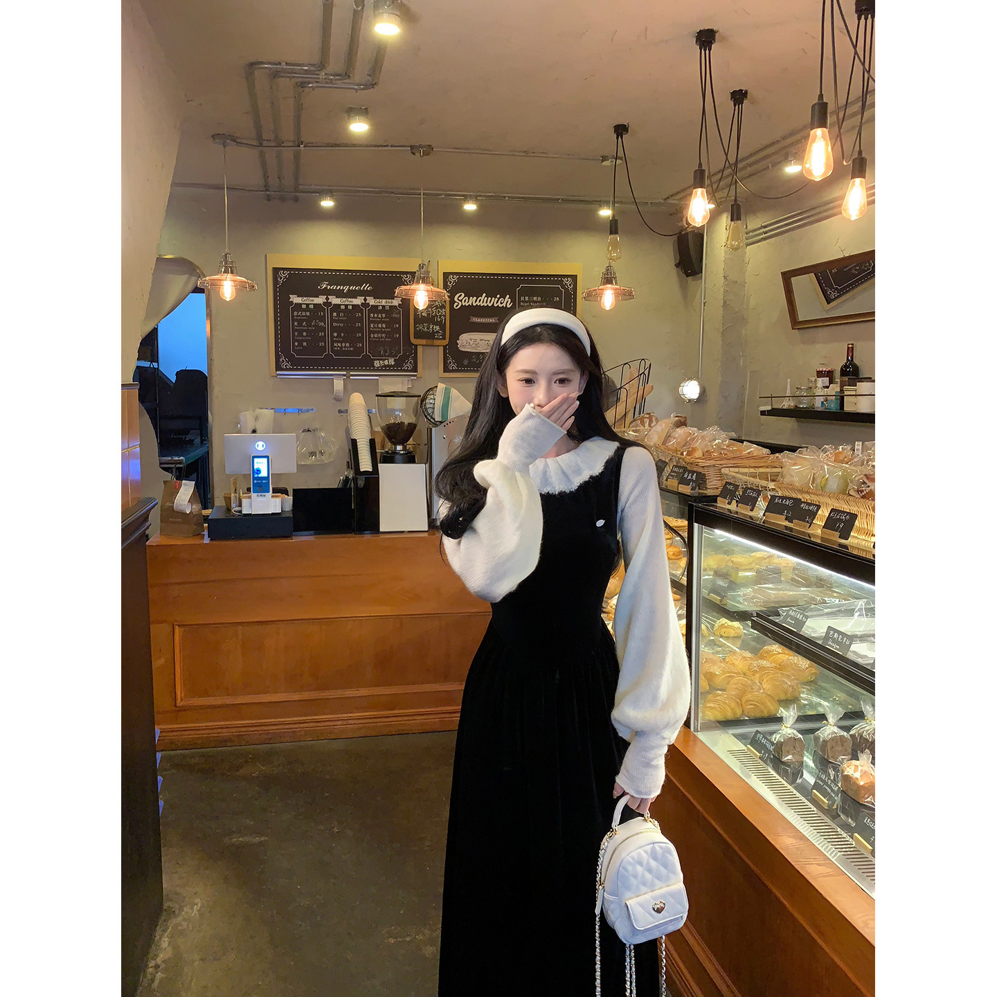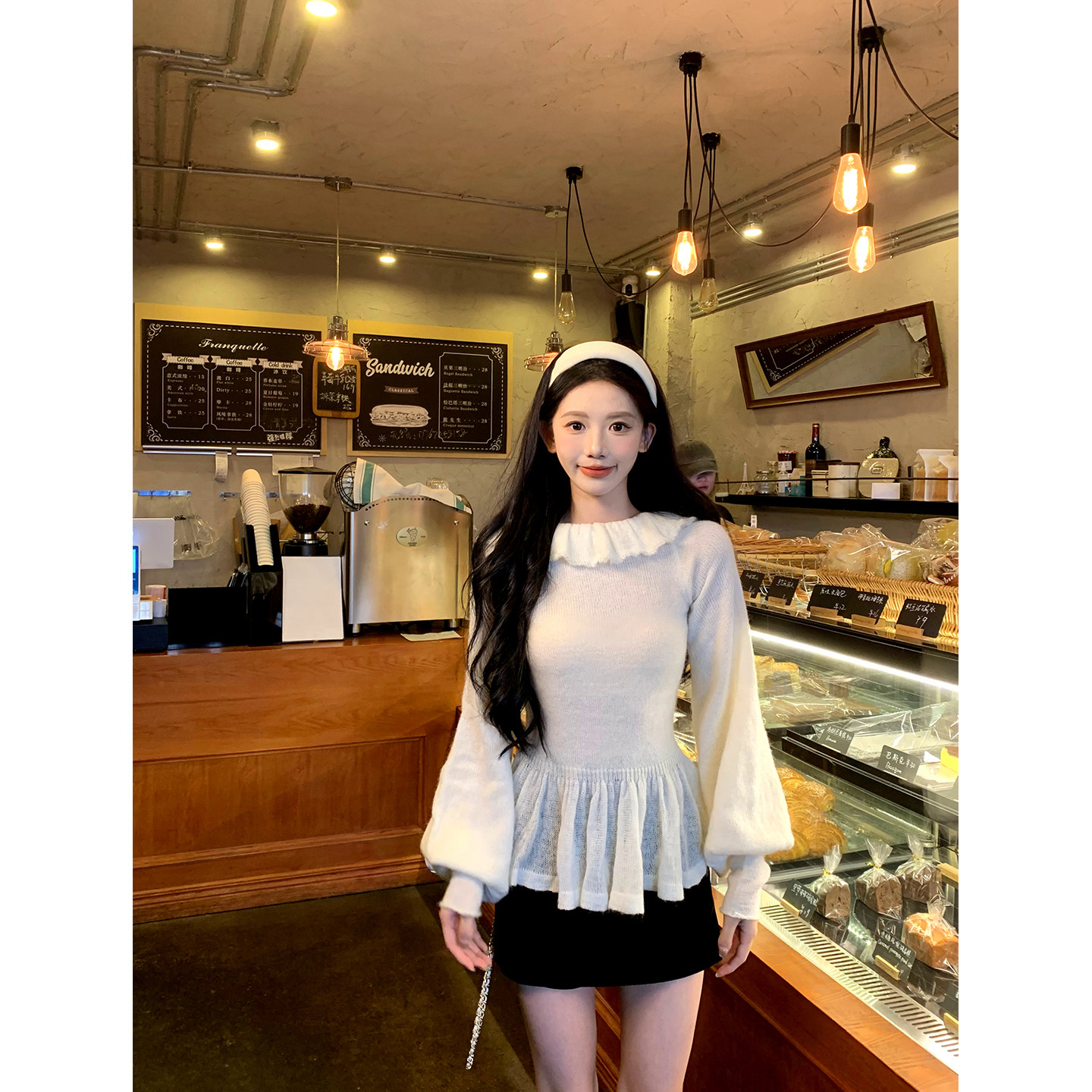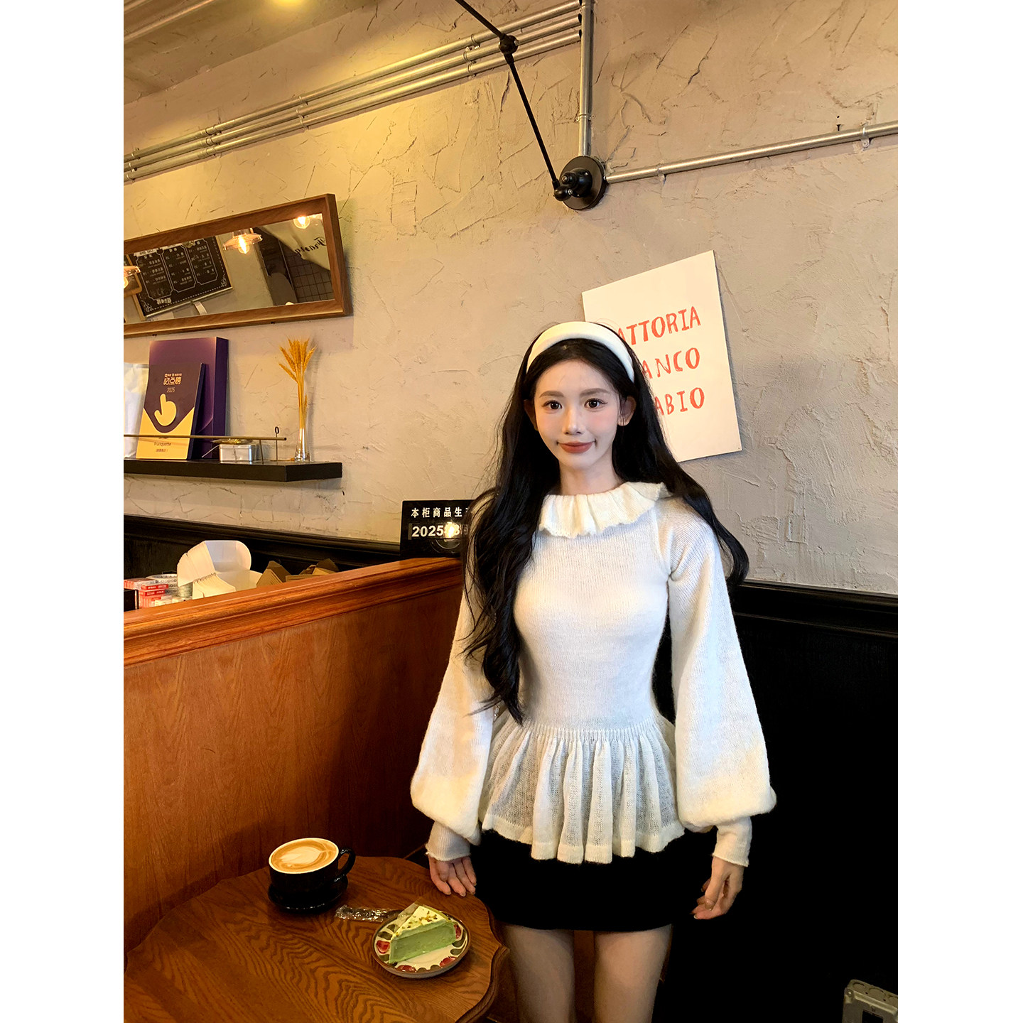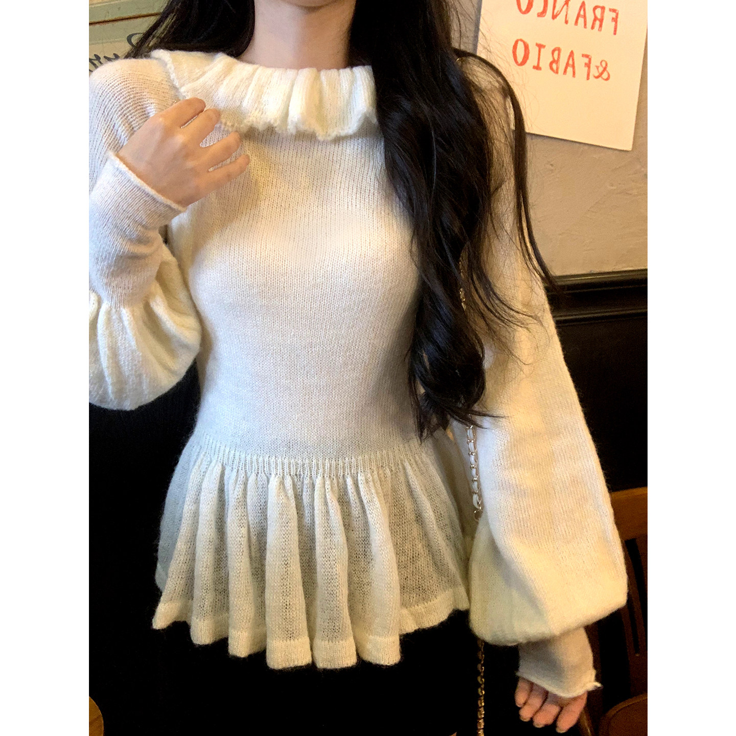 📚 一颗甜桃yikett《古典织物》初秋长袖套头荷叶领显瘦针织衫上衣女