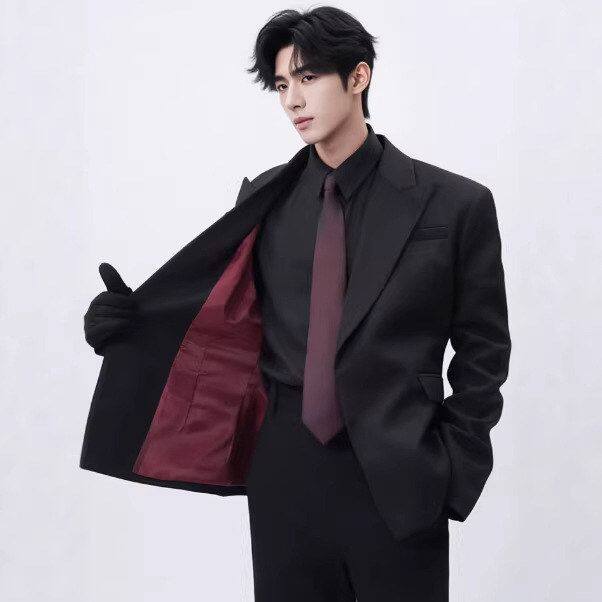 📚 收腰卡门潮宽松垫肩男 廓形痞帅红内西装西服小众外套高级感秋季