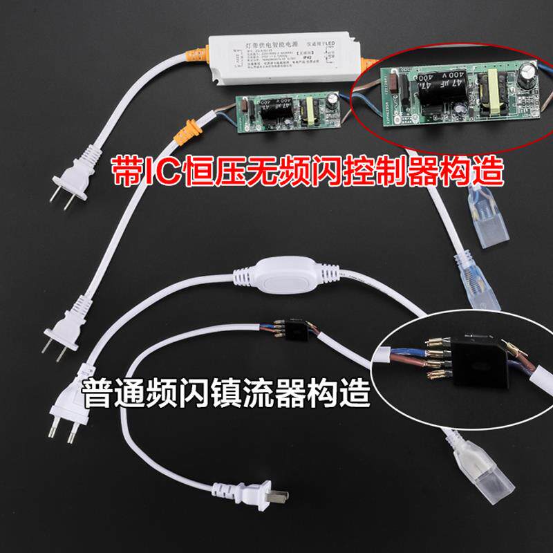 📚 高压灯带无频闪驱动插头电源控制器220v灯带无导线单色镇流器两针