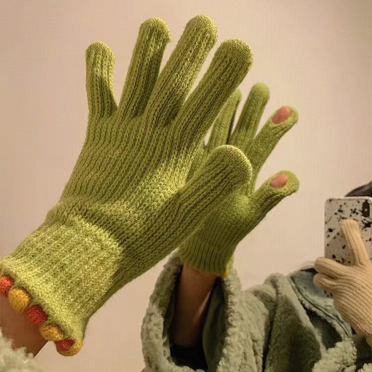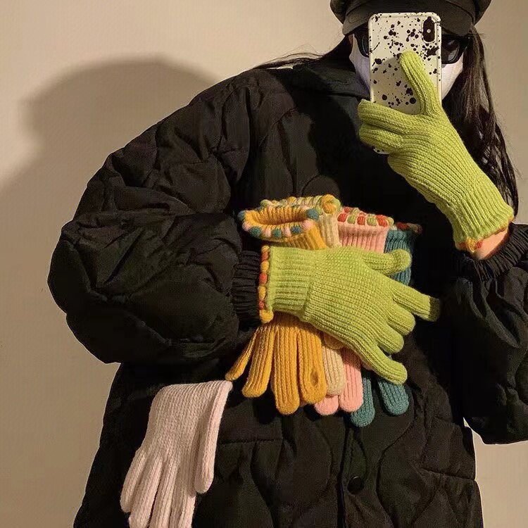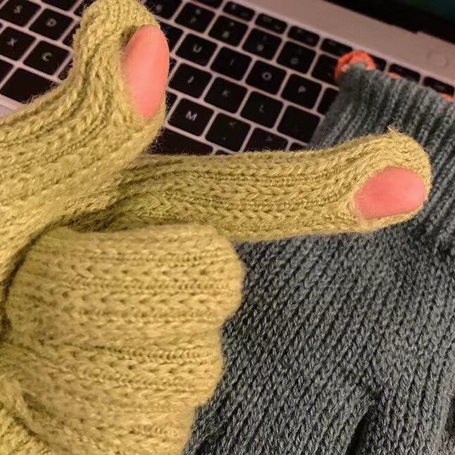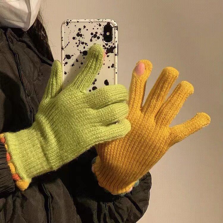📚 ins糖豆韩国毛线针织保暖手套冬季女厚可触屏漏露手指头五指手袜