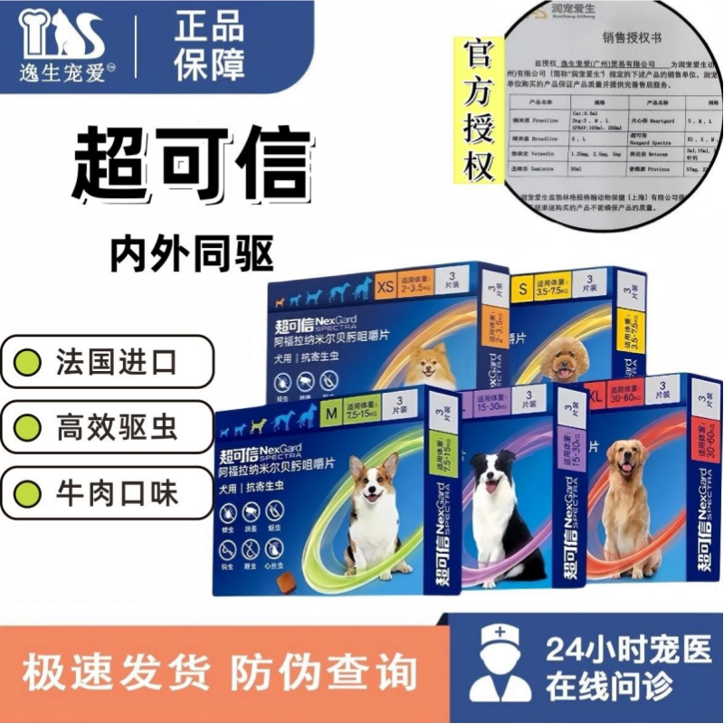 📚 【官方正品】汪宠爱狗狗体内外驱虫蜱虫跳蚤复方沙罗拉纳咀嚼片
