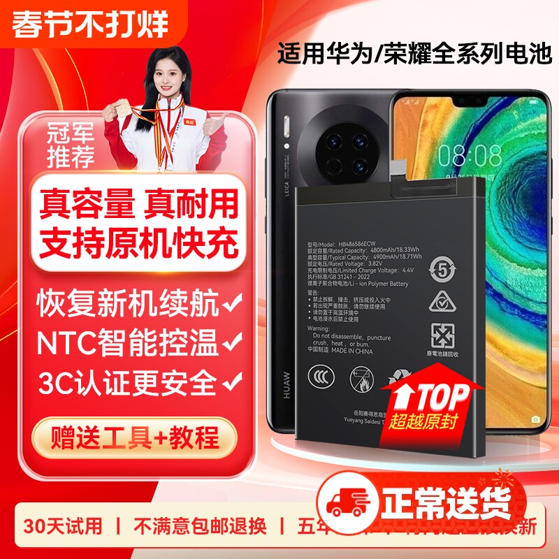 📚 角能适用mate30电池p30p40华为nova5pro原装6se荣耀20proV20麦芒7v9x8xmaX畅享10plus手机play4t大容量magic2