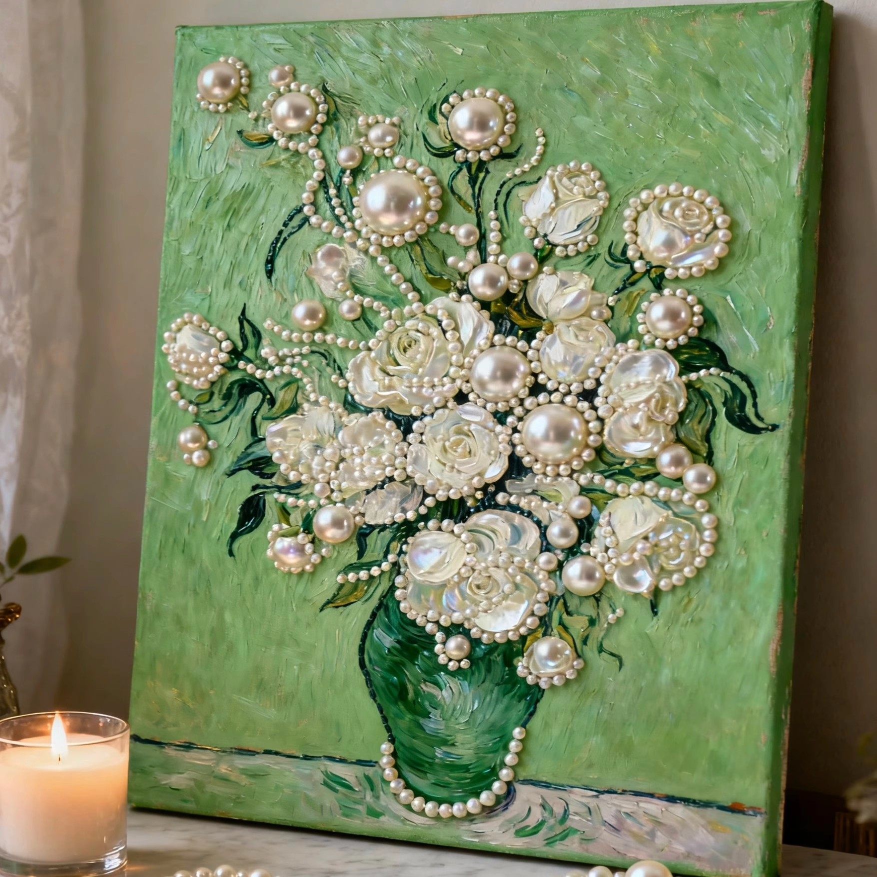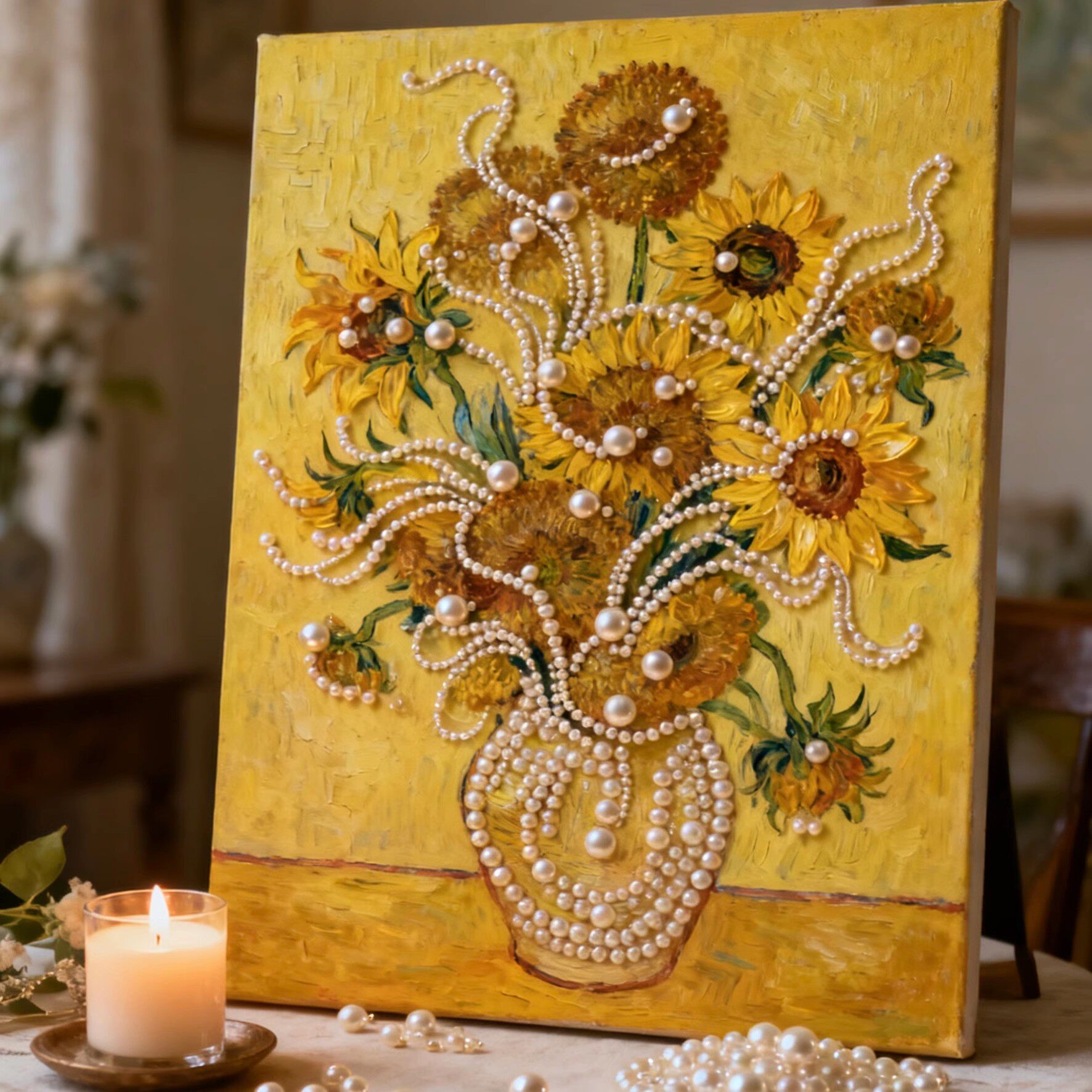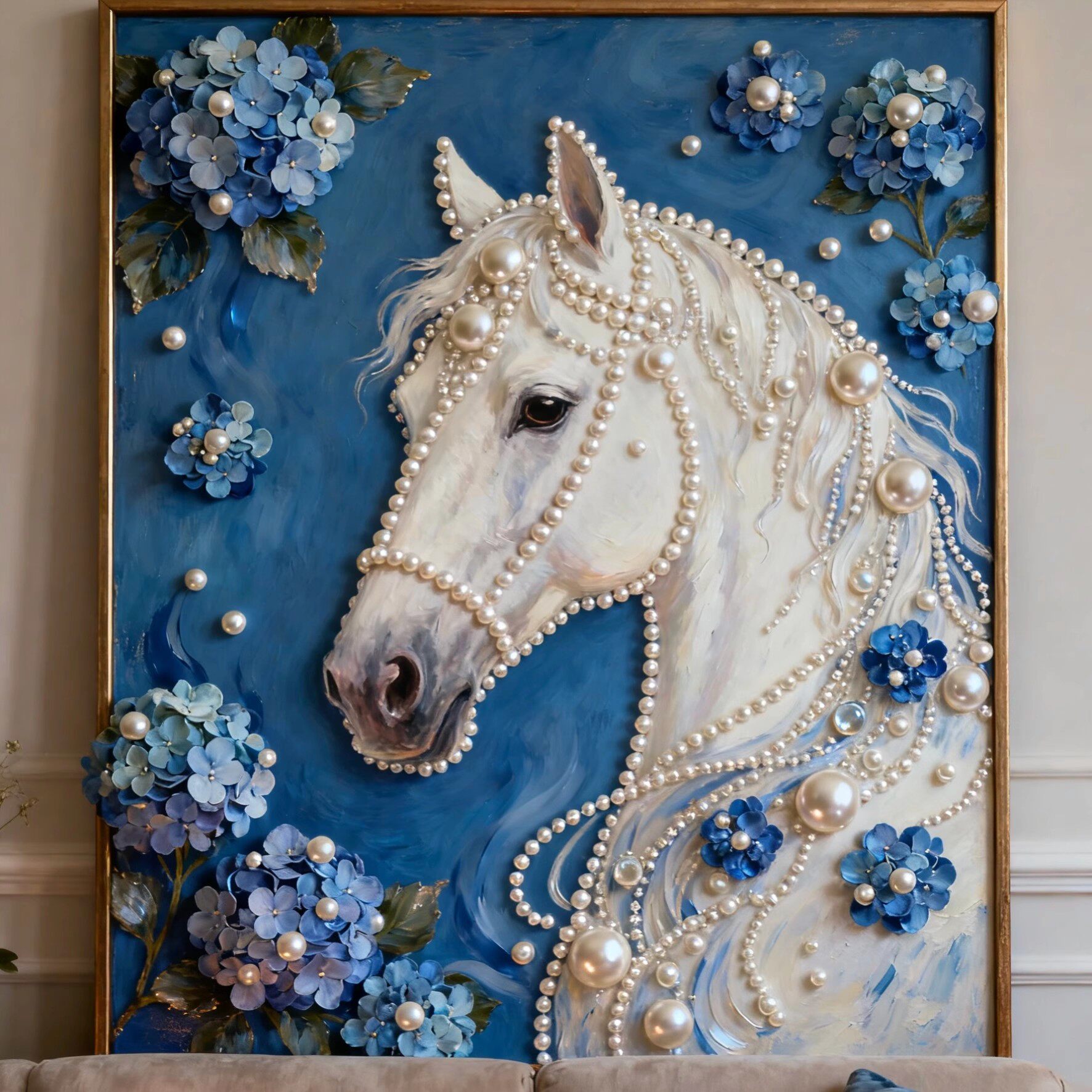 📚 DIY珍珠画手工材料包向日葵花卉等珍珠贴画白马蓝底客厅装饰画