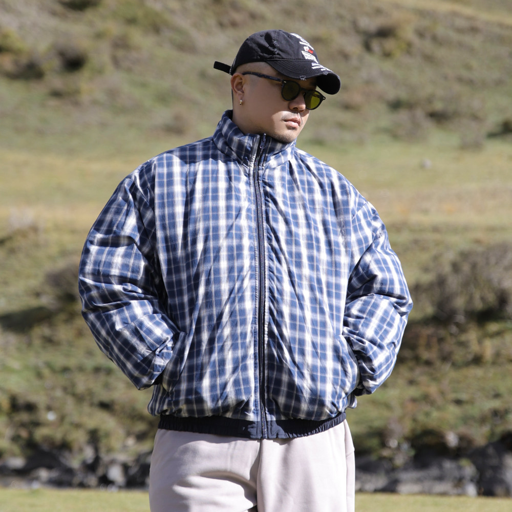 📚 vensonshop秋冬日系双面穿棉服格子立领情侣运动宽松保暖面包服