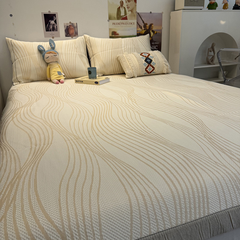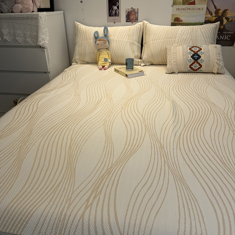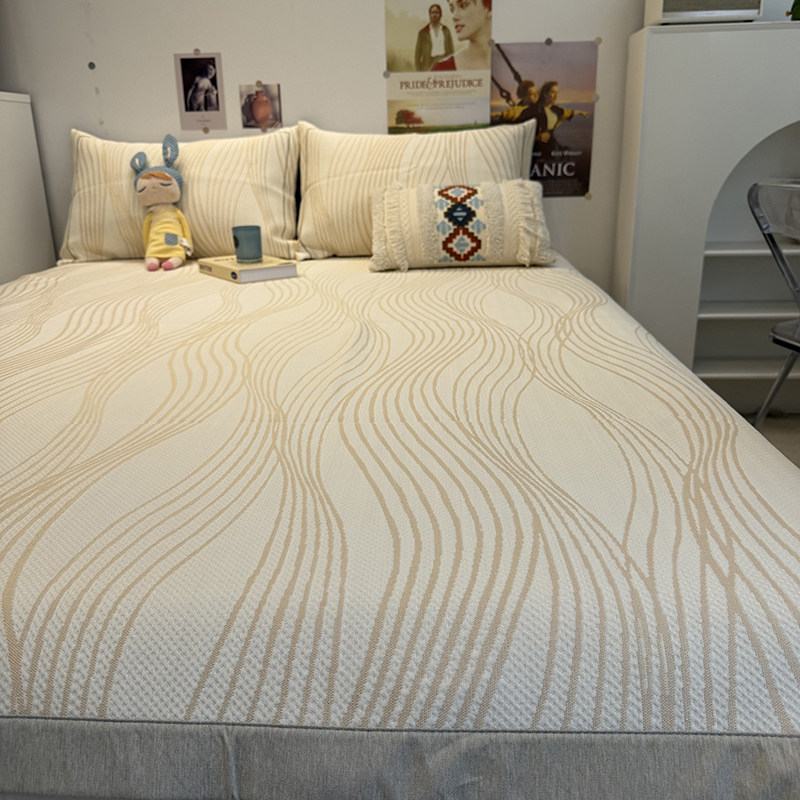 📚 正官旗夏季提花线条香槟凉感冰凉席床笠三件套A类母婴级加厚床席.
