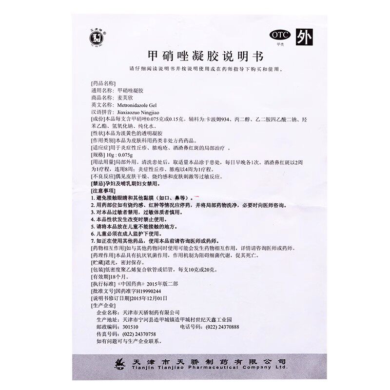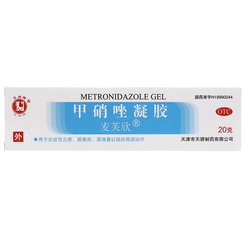 📚 玉虎 麦芙欣甲硝唑凝胶20g/盒炎症性丘疹脓疱疮酒渣鼻红斑