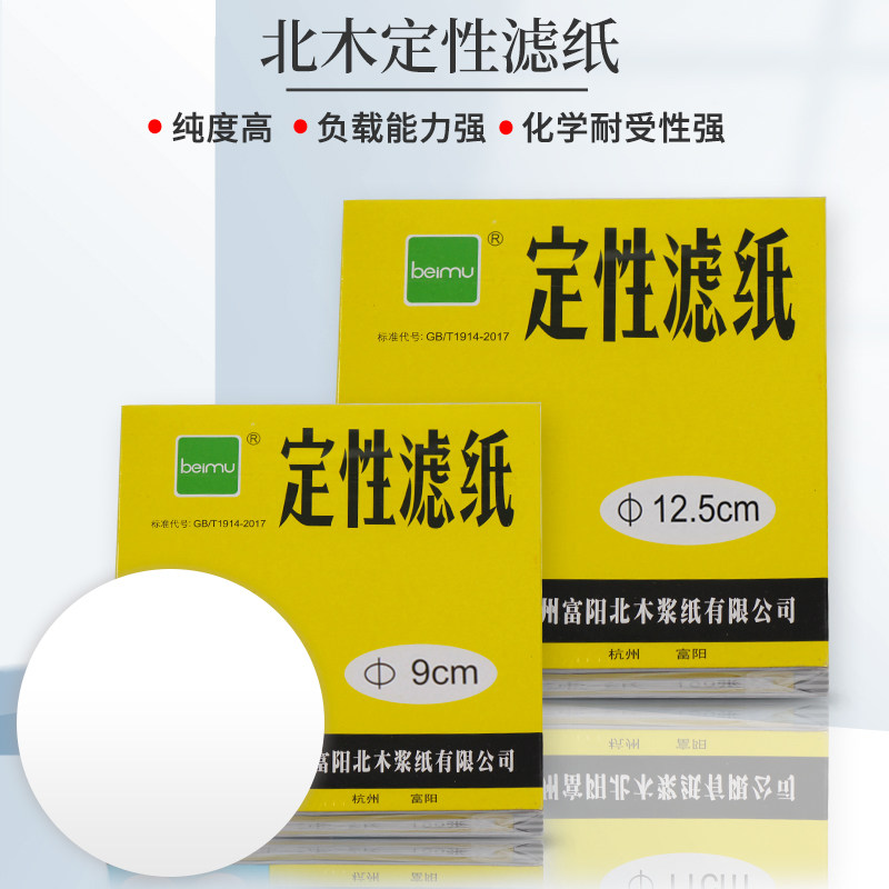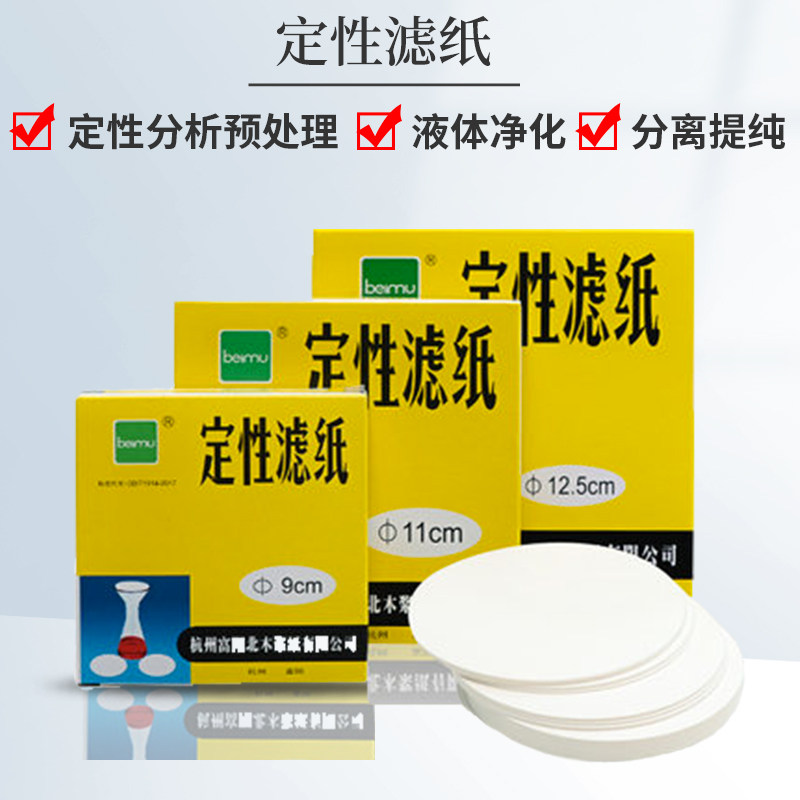 📚 北木定性滤纸杭州富阳实验室定量滤纸beimu快中慢速大张机油检测试化学分析试纸7/9/11/12.5/15/18cm