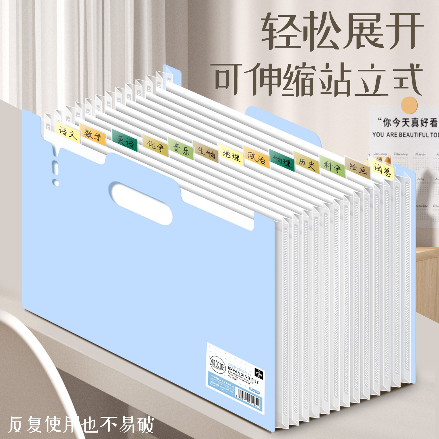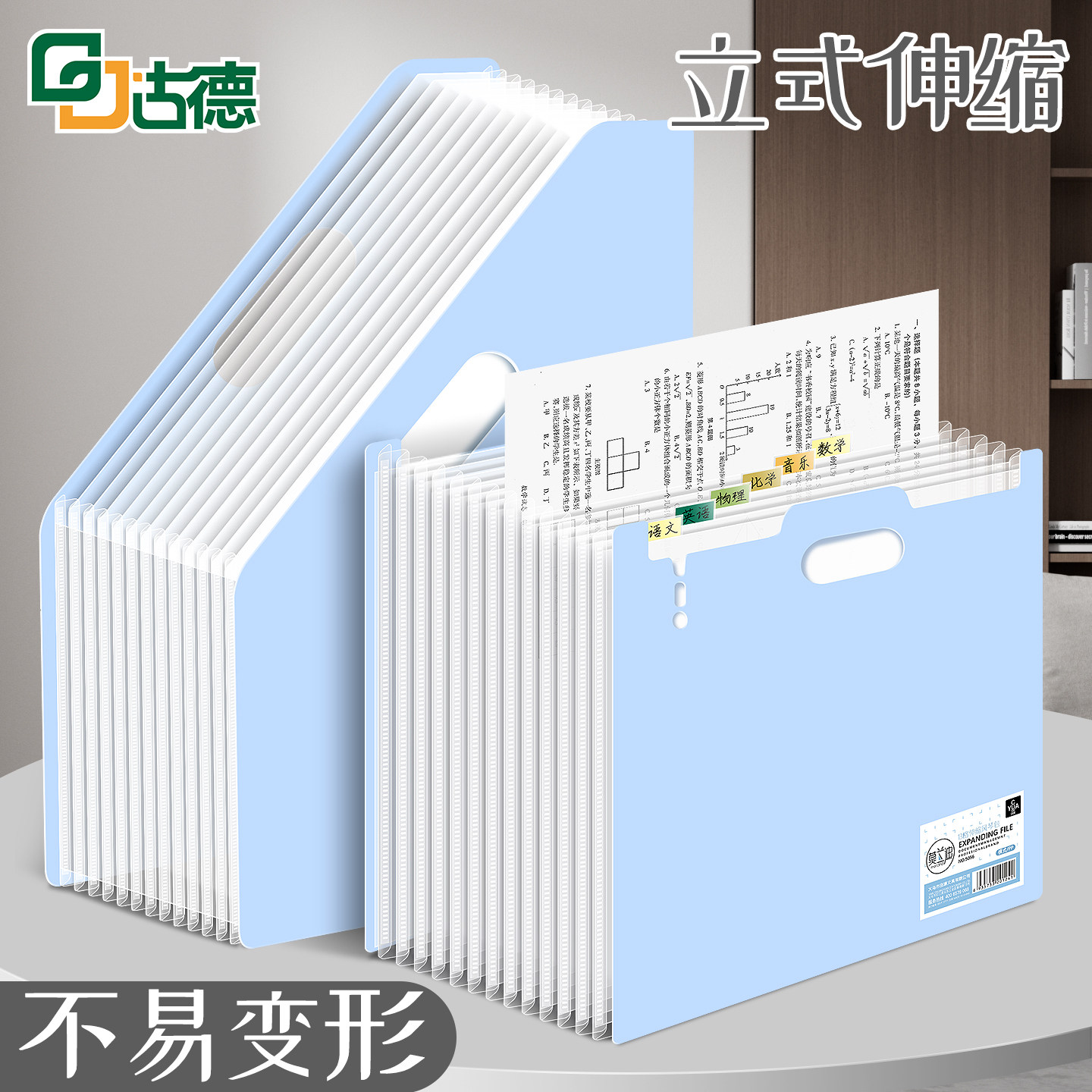 📚 古德85056风琴包文件夹立式大容量试卷收纳袋高中性竖款票据夹A4竖版加厚初中生专用透明收纳架收纳盒册神器