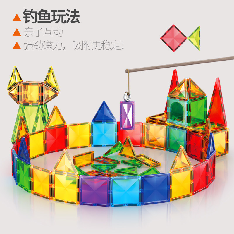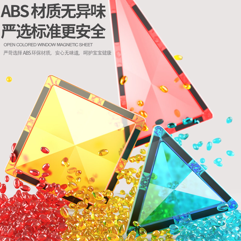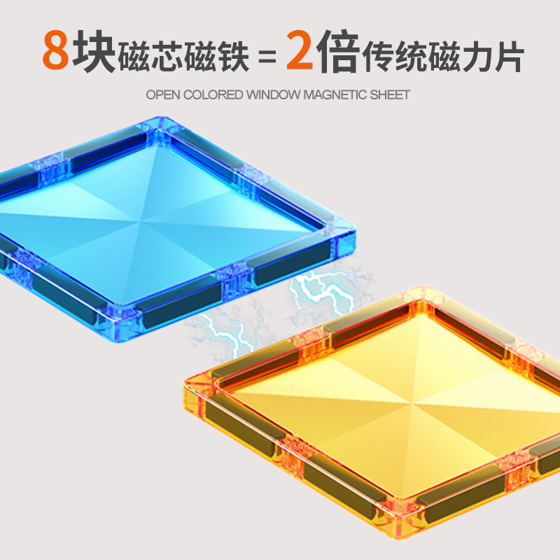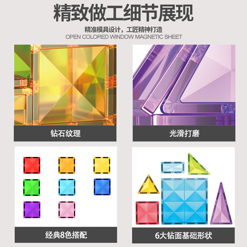 📚 钻面彩窗磁力片强磁性磁铁拼装滑管道积木儿童益智玩具拼图男女孩