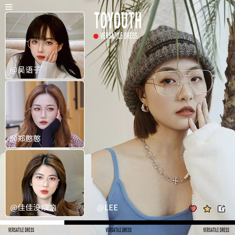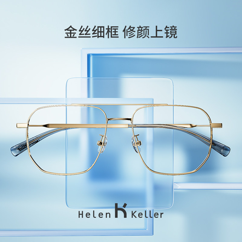 📚 海伦凯勒近视眼镜框男士双梁飞行员痞帅金丝大框眼睛镜架女H82056