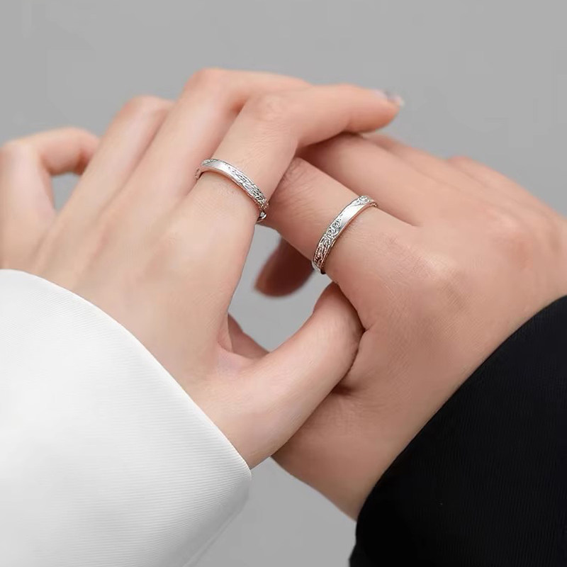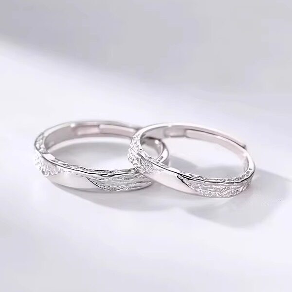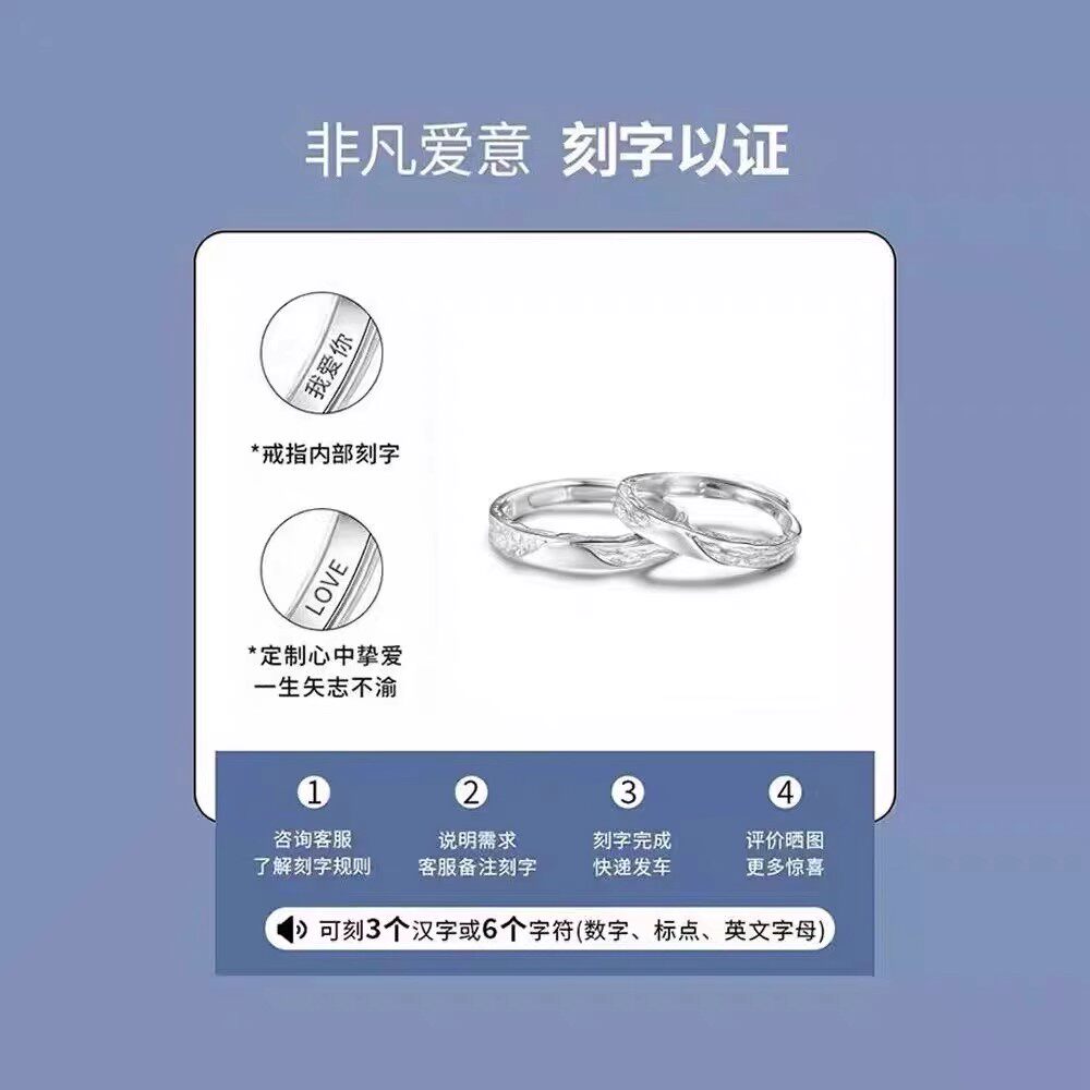 📚 999足银冰川情侣戒指一对简约轻奢时尚精致男女开口对戒免费刻字
