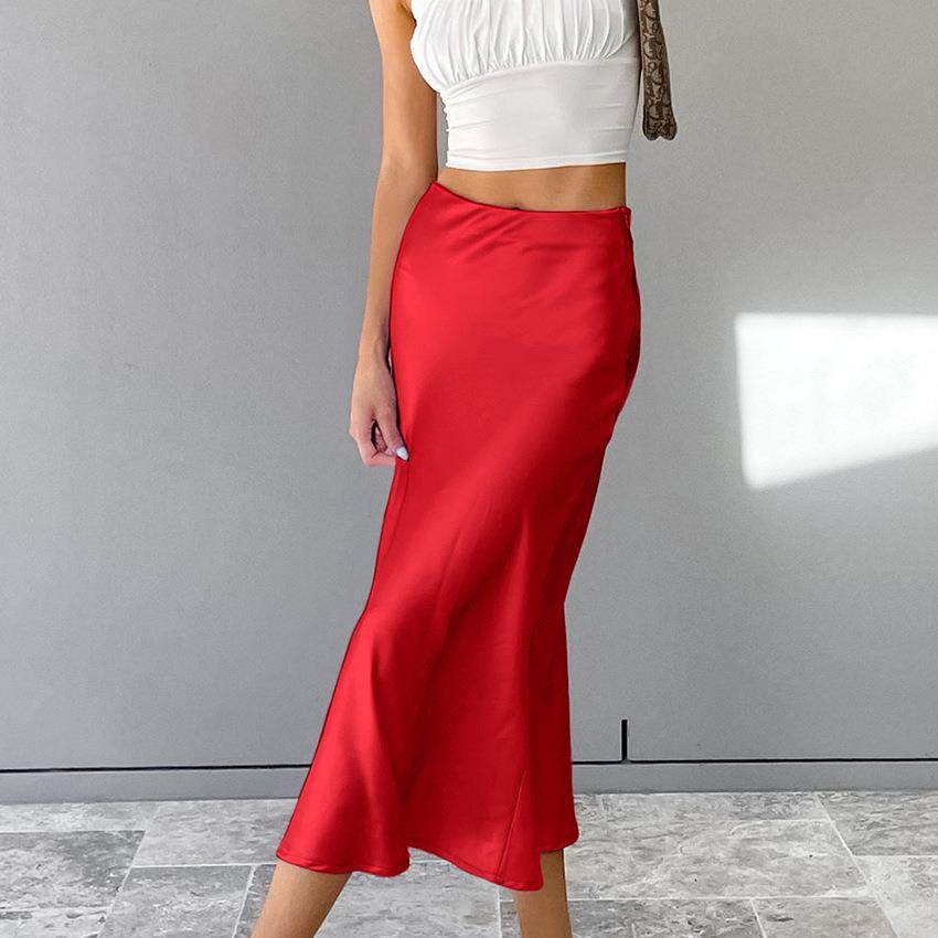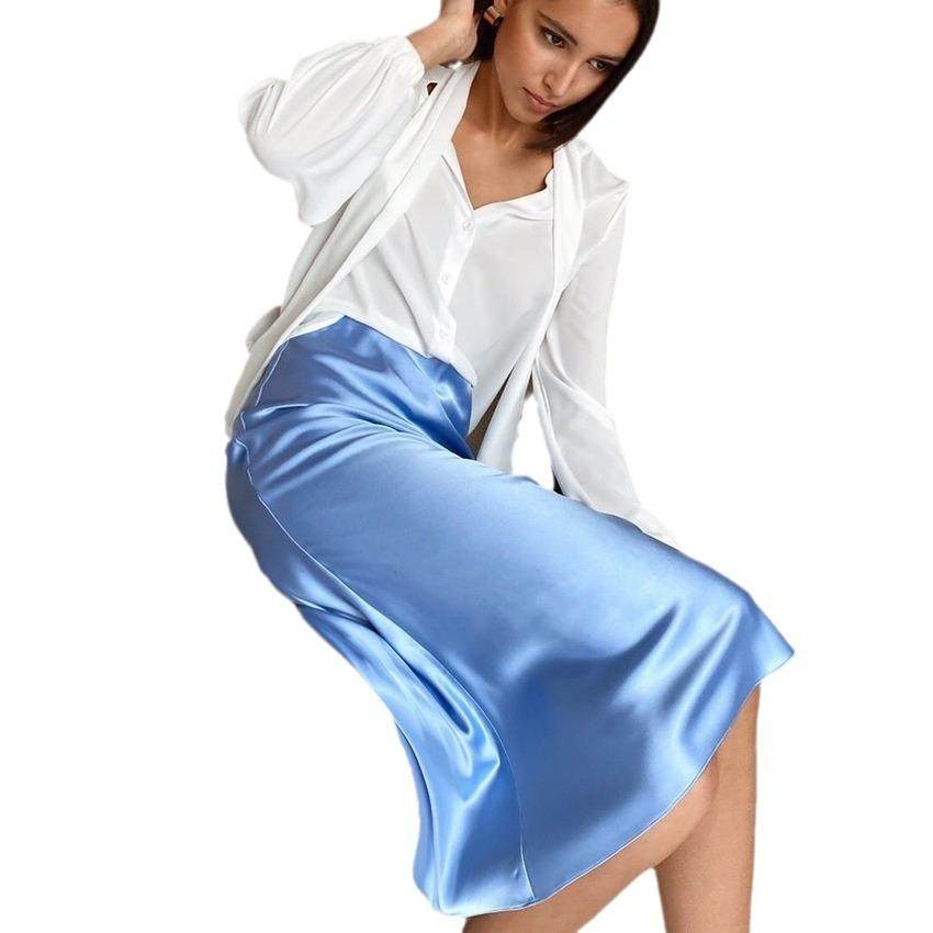 📚 summer long skirts elegant satin silk fashion bottoms women